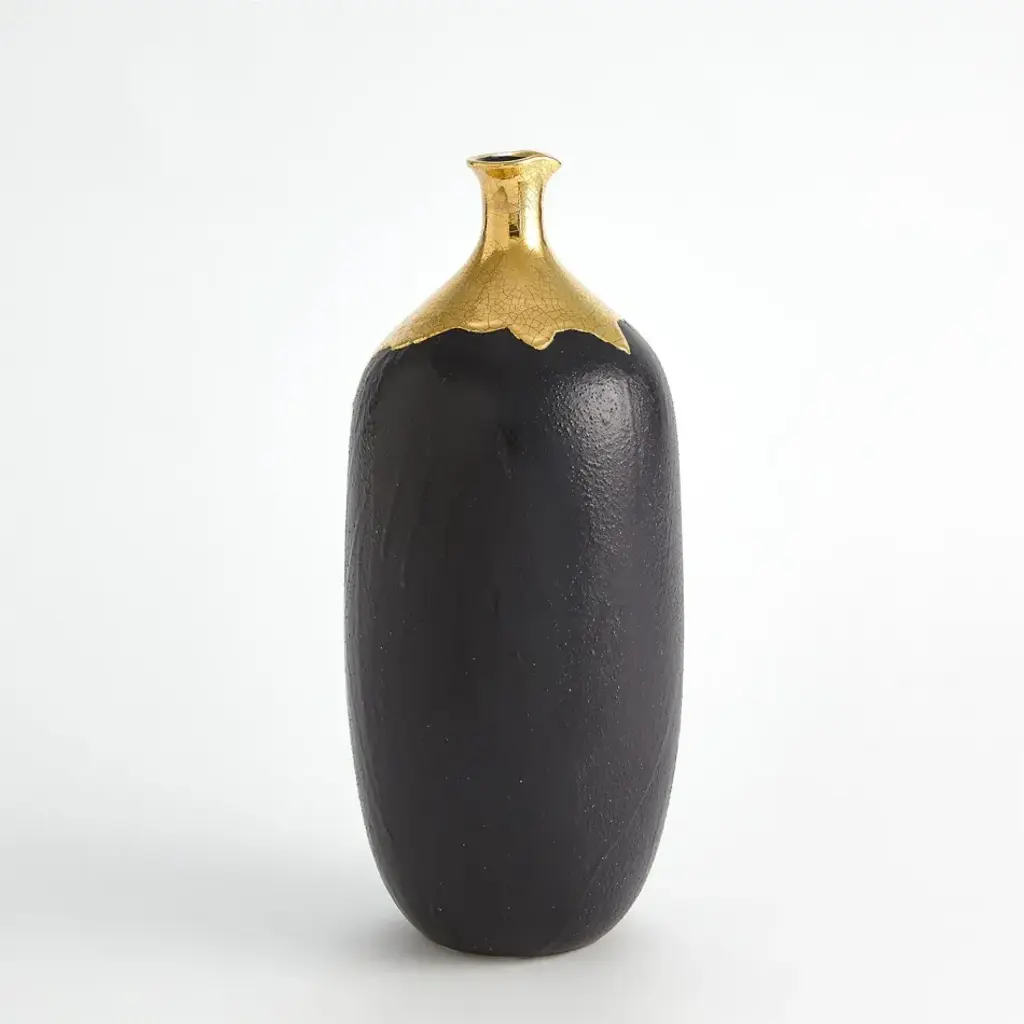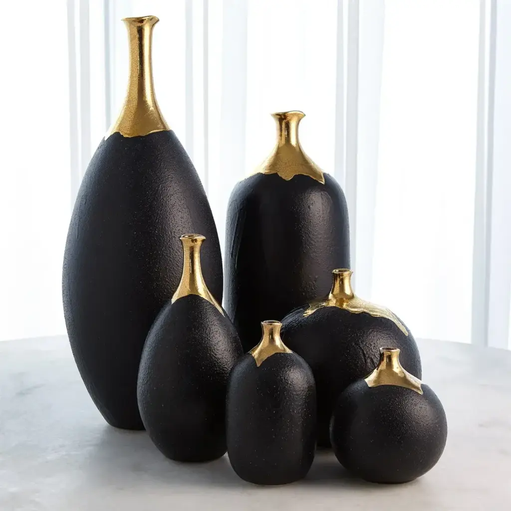 The Dipped Golden Crackle Vase Collection is made of Italian slip cast ceramic and each vase is hand dipped in 24-karat gold with crackled detail. From a fashion forward perspective, Global Views offers accessories, furniture, statement lighting, and an assortment of rugs and mirrors to add beauty and joy to your home.