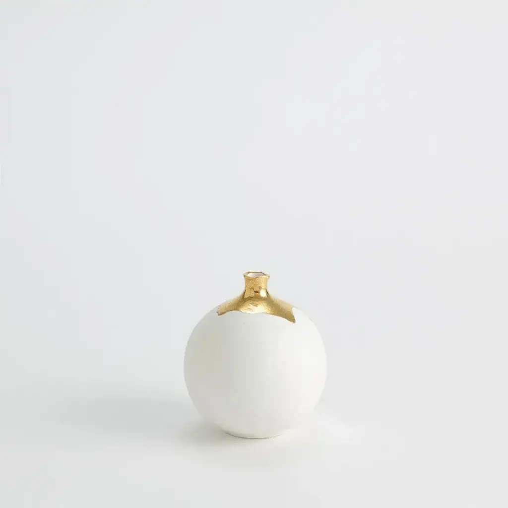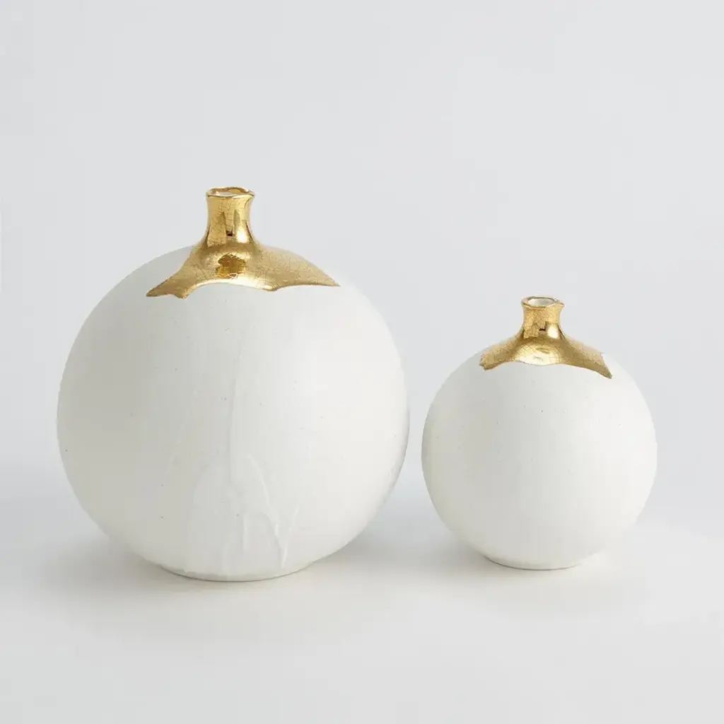 Dipped Golden Crackle/white Sphere Vase