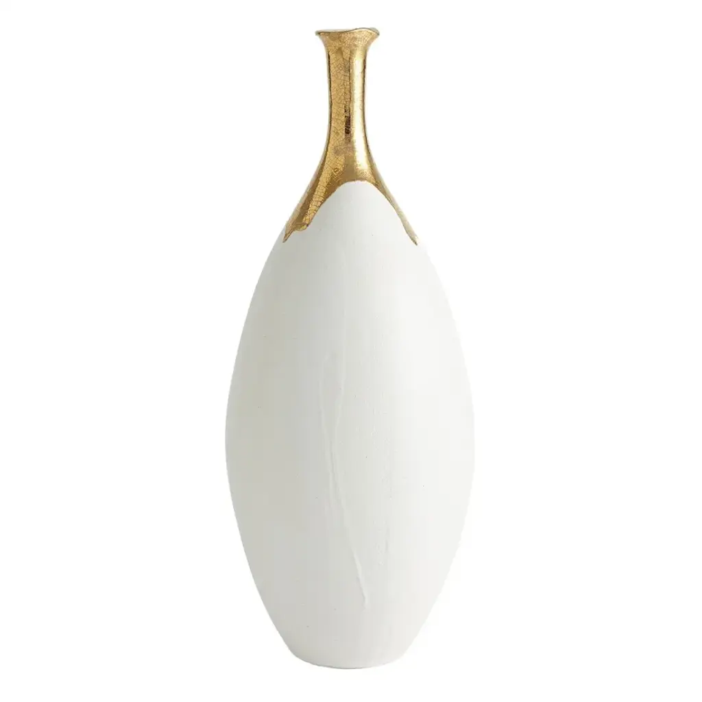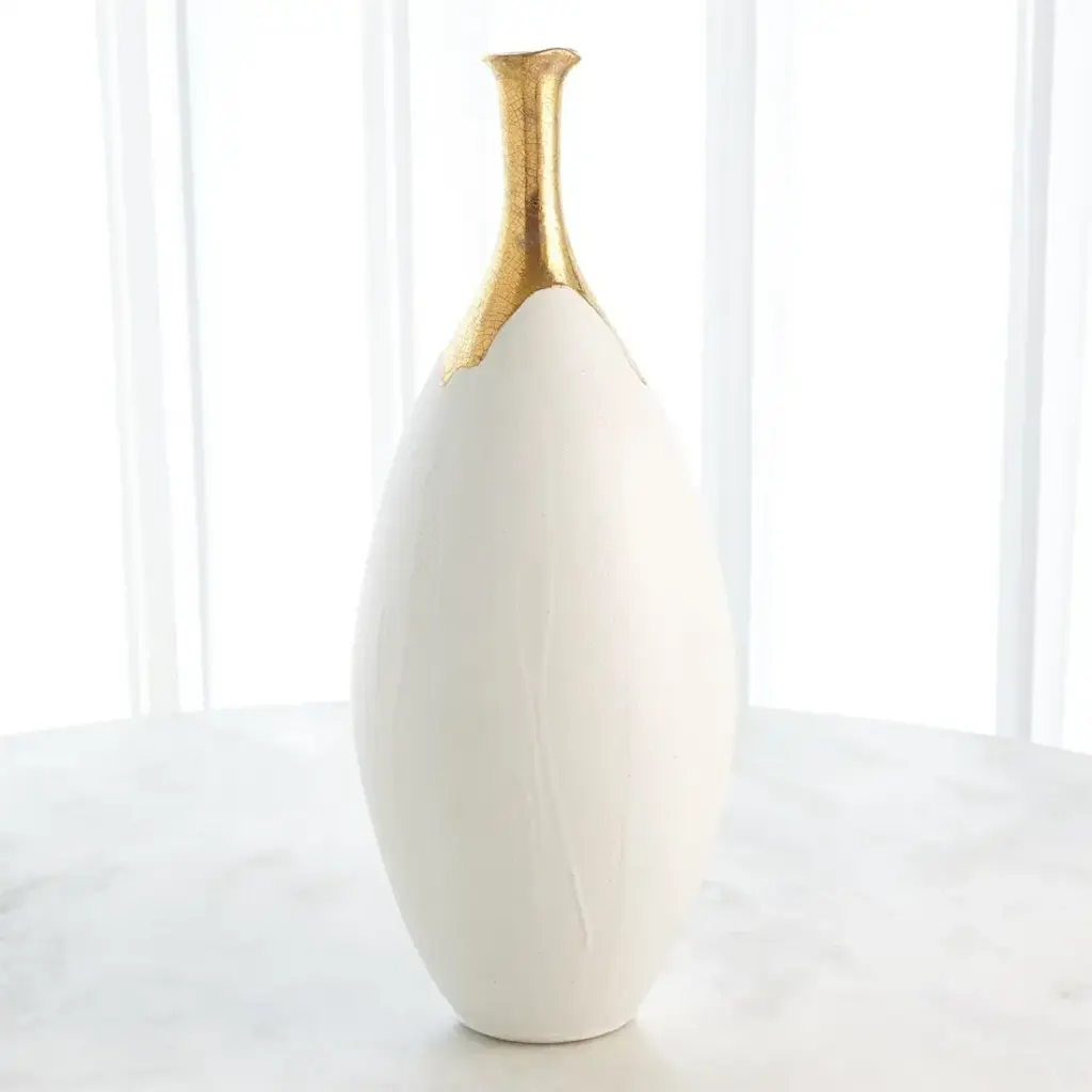 The Dipped Golden Crackle Vase Collection is made of Italian slip cast ceramic and each vase is hand dipped in 24-karat gold with crackled detail. From a fashion forward perspective, Global Views offers accessories, furniture, statement lighting, and an assortment of rugs and mirrors to add beauty and joy to your home.