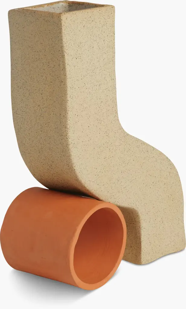 Brooklyn-based ceramics studio SIN was founded by multi-disciplinary designer Virginia Sin in 2006. One of her first clients was Design Within Reach, and we share her passion for “putting the fun into the functional." Her handmade Doline Vase was inspired by the winding roads of Matera, Italy. This vase takes a winding path as well, with a curved stoneware vessel resting on a tubular terracotta base. Made in USA.