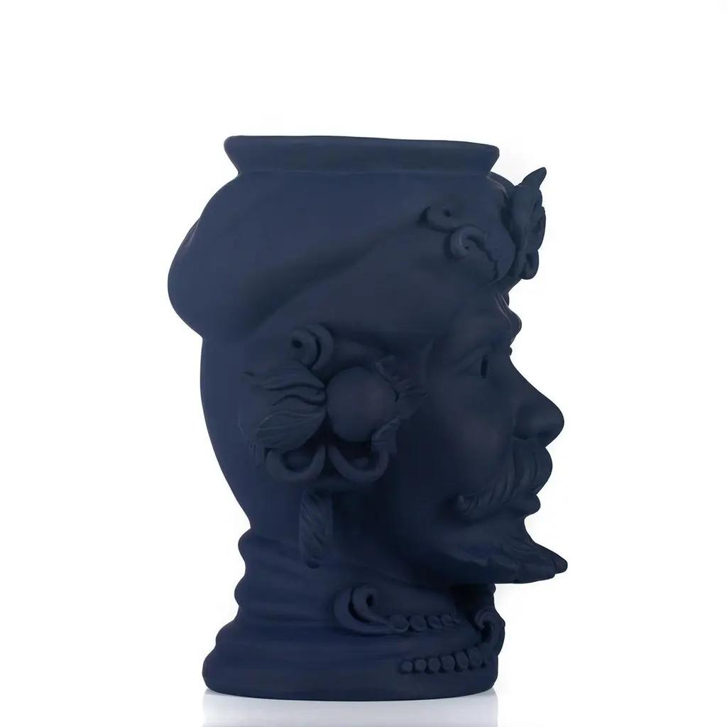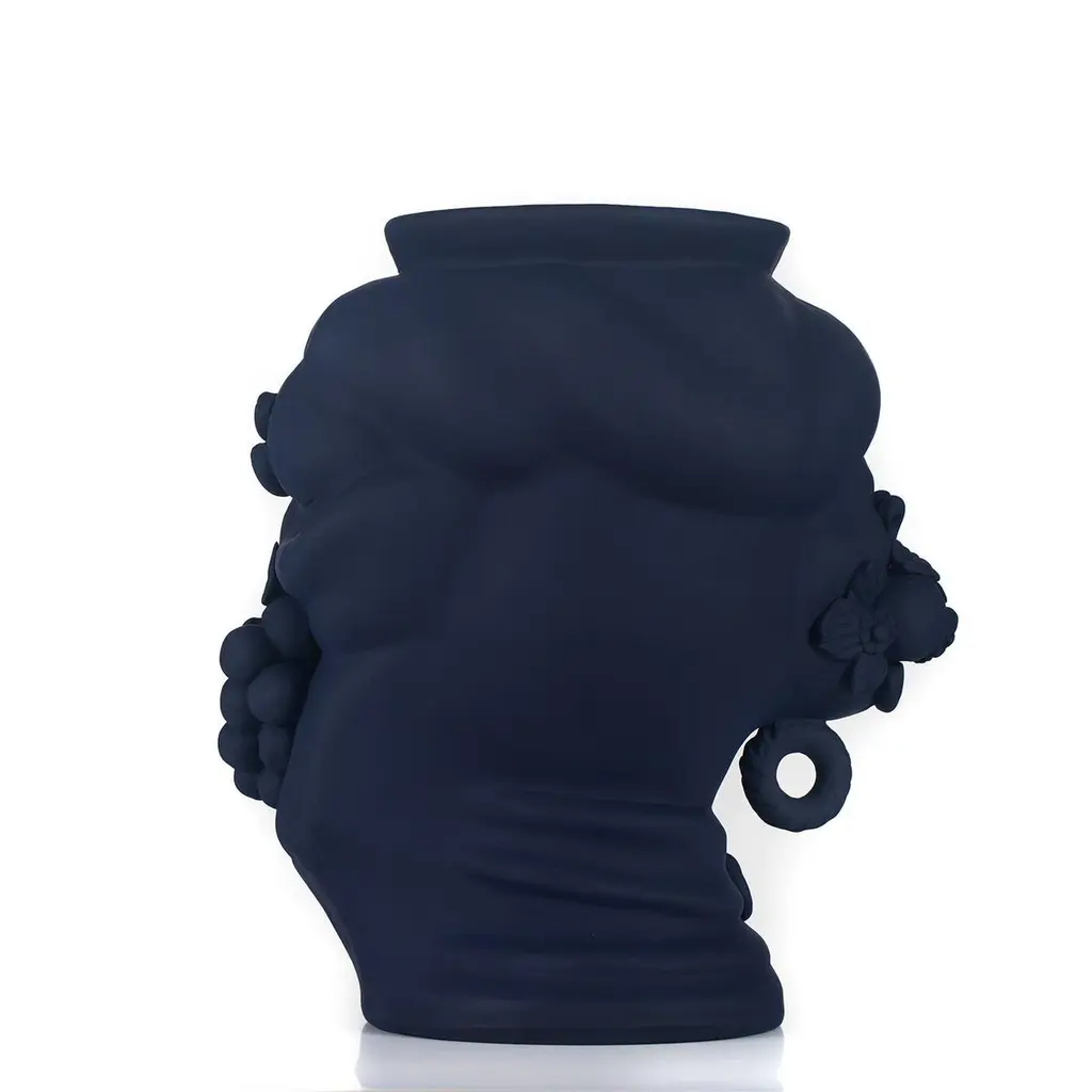 The bold Don Filippo Vase is part of a remarkable range of mythology inspired vases, crafted entirely by hand. Painted all over in a dark midnight blue with a matt finish, the ancient character will make a fearless addition to any area in the home or an outdoor space where flowers or plants are desired.