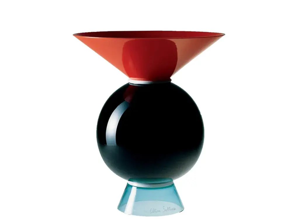 Clever synthesis between form and function, this singular glass vase stands out for its daring anthropomorphic traits celebrating femininity. Red and gray tones alternately enliven the silhouette, which was designed by Gio Ponti for the Italy At Work project. Expression of his avant-gard revolutionary vision, the piece is also available in different color options to be explored in the Artemest catalog.
