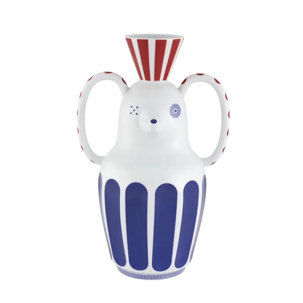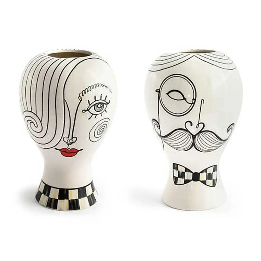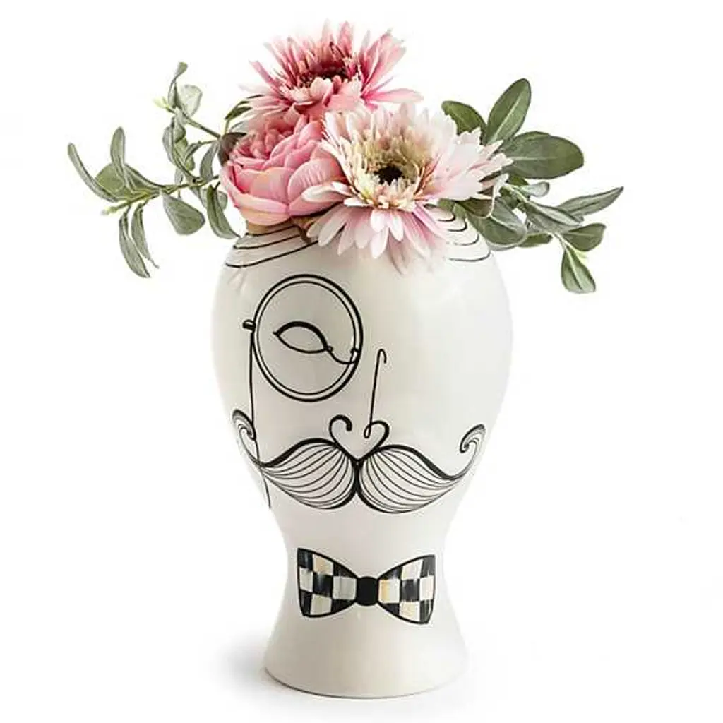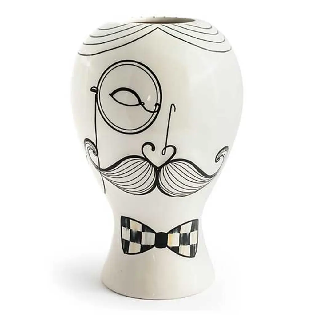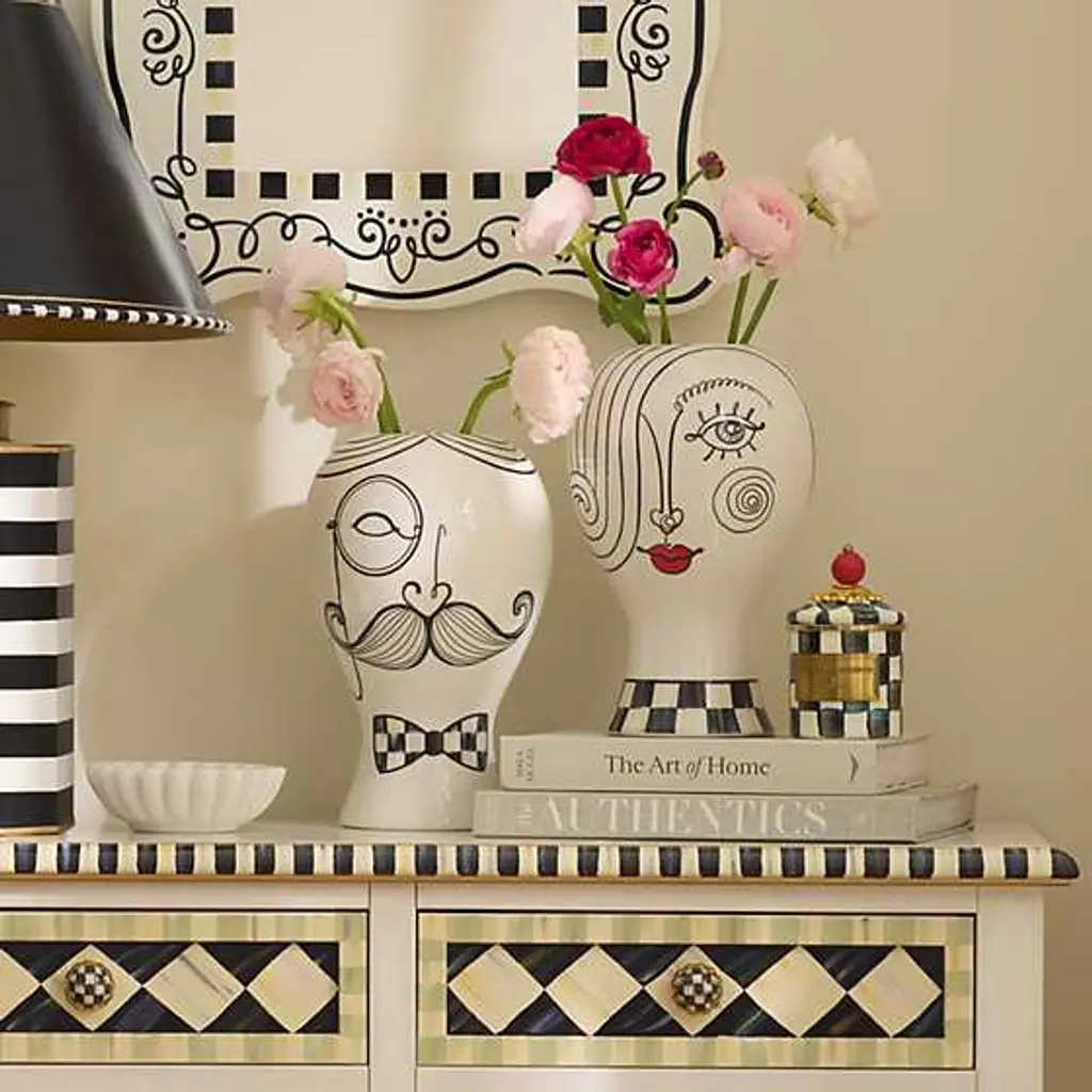 Flowers, fresh or everlasting, will be in full bloom with this whimsical ceramic dandy head vase decorated with doodles and Courtly Check®.
