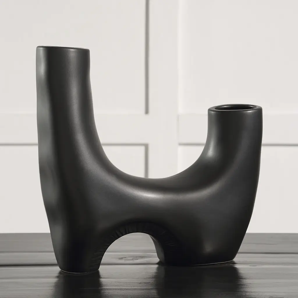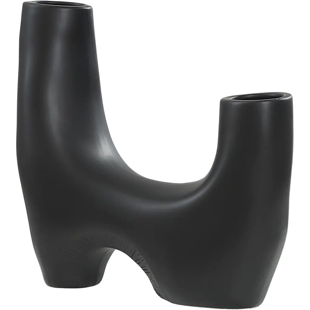 Raise the bar on modern style in any design project you have in the works with this stunningly sculptural Doppio vase. Conceived by Arren Williams, Canadian interior stylist and designer, hes successfully combined form and function to deliver this must-have decorative vase. Crafted from high-quality ceramic and featuring a matte black glazed finish, this flower vase is the perfect match for modern settings. Showcase it on a dining table or coffee table as an eye-catching minimalist centerpiece or mix it in with a collection of treasured decor. Either way, having this ultra-modern vase in the mix is a sure-fire way to elevate any interior.