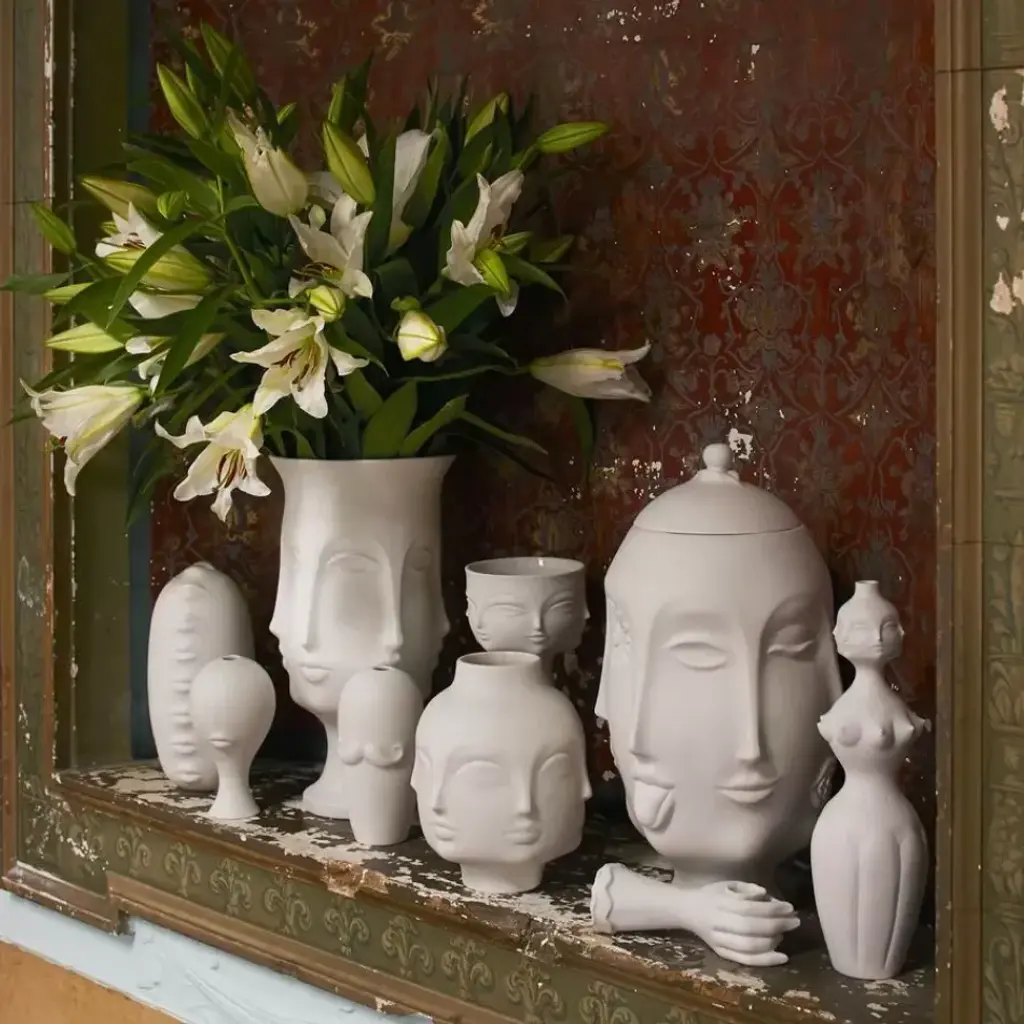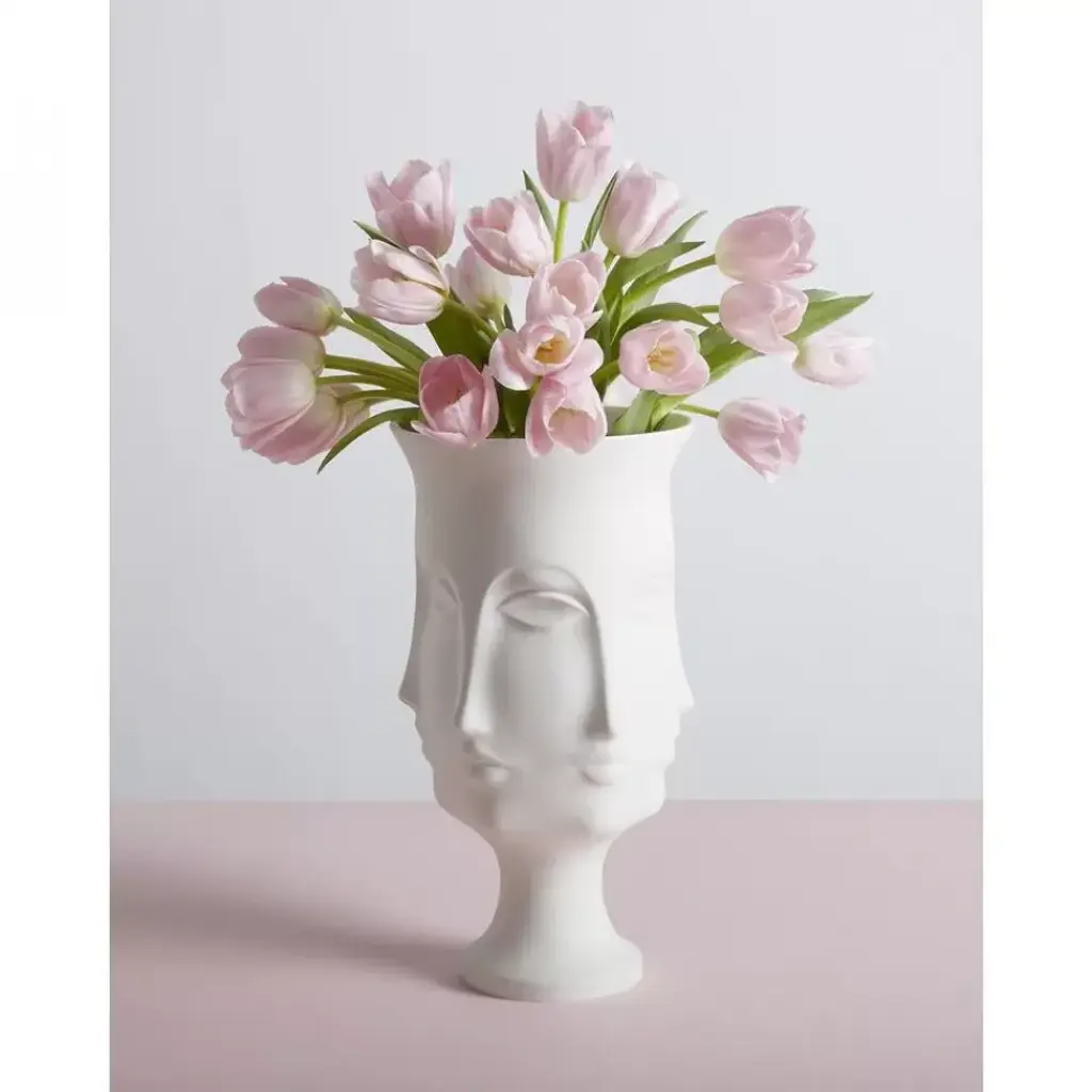 Our Dora Maar Urn gives good face from every angle, an unglazed finish highlighting the muse's flawless features in fabulously delicate detail. Inspired by Dora Maar, the French photographer, poet, and painter best known for being a lover and muse of Pablo Picasso. Jonathan throws the models for the Muse vessels and then substitutes our signature geometric relief patterns with body parts—faces, breasts, lips—to create a surreal style. Each piece is made from unglazed matte porcelain to accentuate the forms and is inspired by our favorite artists' muses.