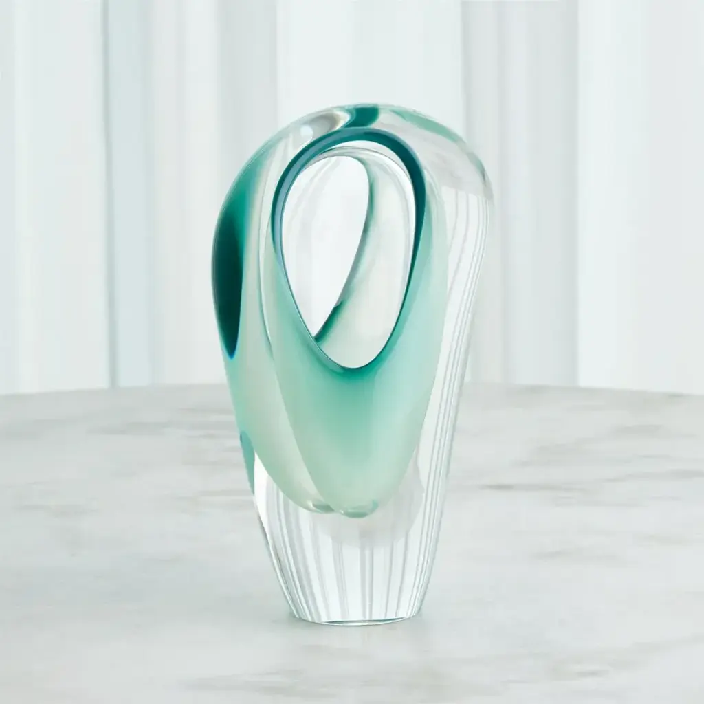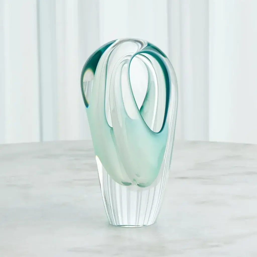 Handcrafted by Polish artisans, the Double Vase is accomplished by blowing clear and wintergreen-colored glass into layers. This vase is uniquely double-sided with a wall in the center - offering areas to display your gorgeous floral. From a fashion forward perspective, Global Views offers accessories, furniture, statement lighting, and an assortment of rugs and mirrors to add beauty and joy to your home.