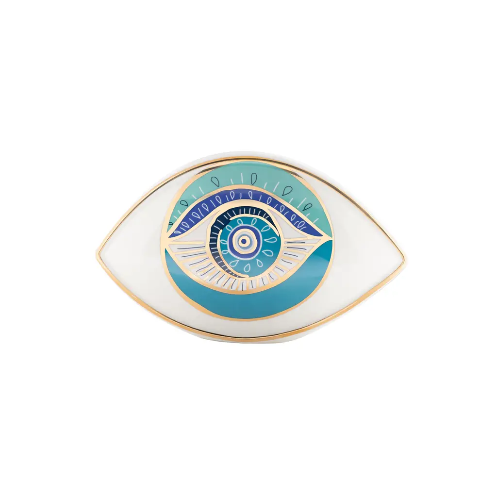 Expand your horizons with dreamy third-eye mindscapes rendered in Delft-inspired blues and accented with real sparkly gold. High-fired porcelain elevates the experience. Our Druggist Square Vase features a unique design on its front and back—rotate to refresh your view. A surreal addition to your table, shelf, or mantel. Style it with our other Druggist pottery and create your own dreamscape.