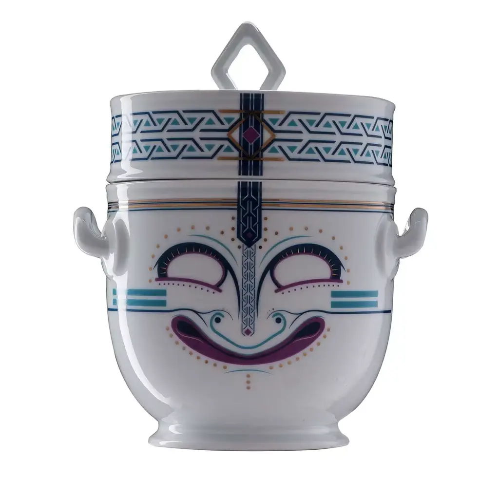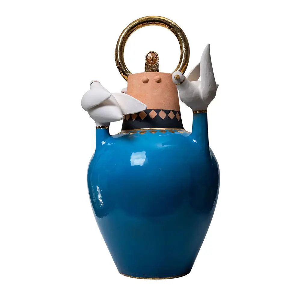 Dream Catcher. Expand your horizons with dreamy third-eye mindscapes rendered in Delft-inspired blues and accented with real sparkly gold. High-fired porcelain elevates the experience. Our Druggist Tall Vase features a unique design on its front and back—rotate to refresh your view. A surreal addition to your table, shelf, or mantel. Style it with our other Druggist pottery and create your own dreamscape.