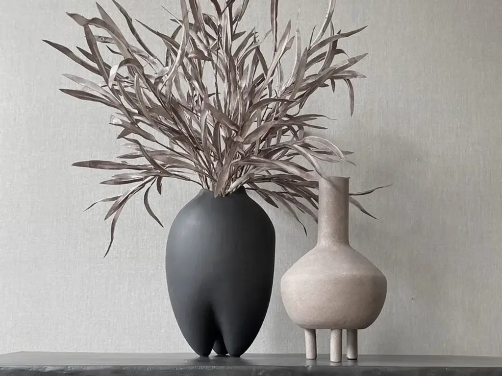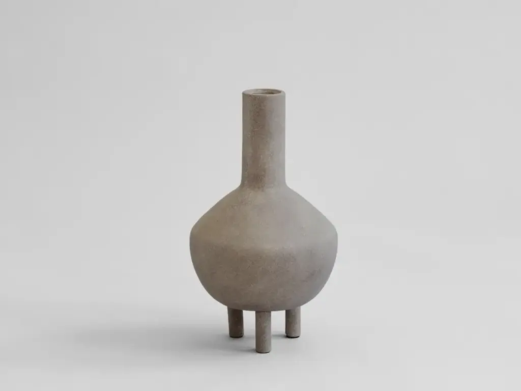 Duck Fat is a ceramic vase.Reminiscent of little, individual three-legged characters or friendly creatures, the DUCK series is a playful and exuberant addition to a more minimalist series of trays, vases, bowls, pots, jars and plates in a modern interior. Yet, true to the design manifest of 101 Copenhagen, the collection is held in natural colours to fit into the Scandinavian home. DUCK comes in various shapes, sizes and colours - like individual family members gathered around a table. As it is a hand glazed natural product, the colours may vary slightly and while it is not 100% waterproof, a bag for fresh flowers is included.