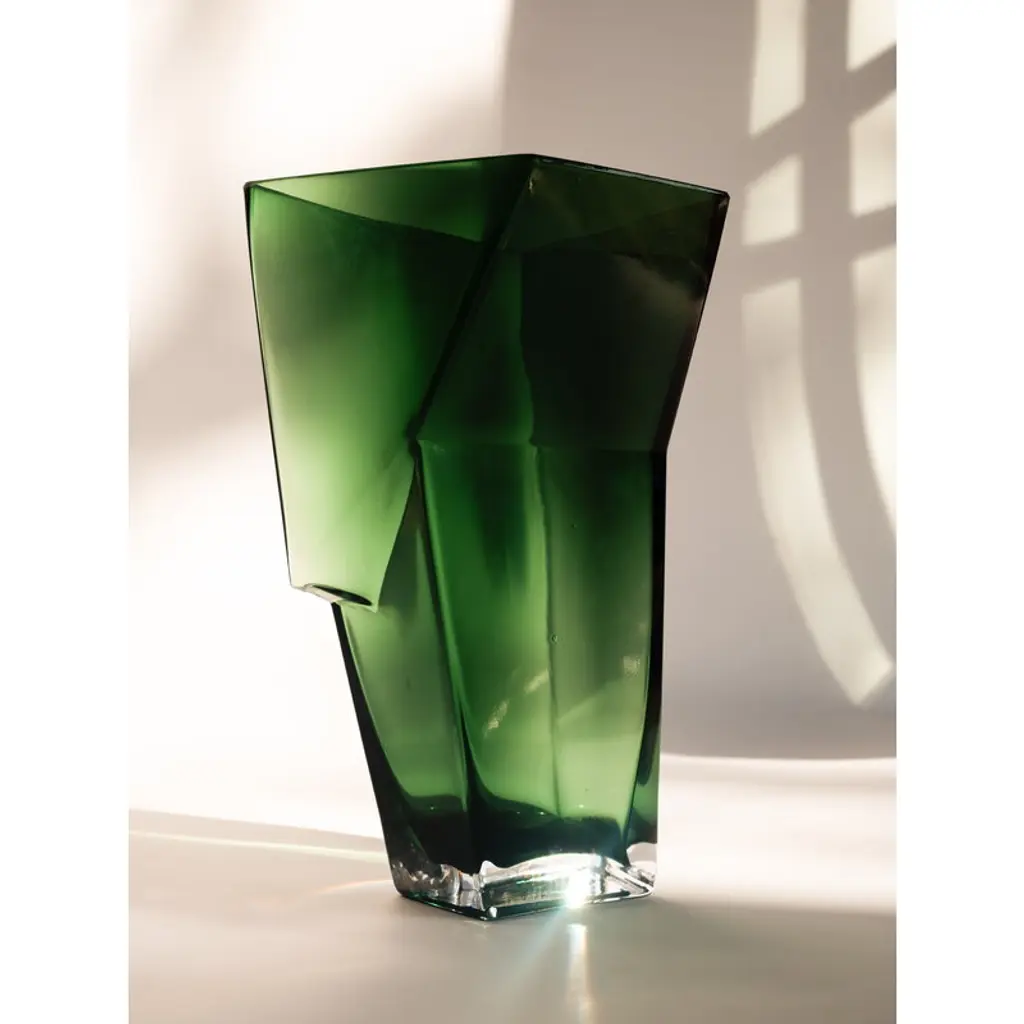 The Dunk °8 vase by Serax stuns with its strikingly angular, irregular silhouette. Originally, tests were made from cardboard, but now the sculptural shape has been brought to life in high-quality glass. Designed by Bob Verhelst, the Dunk °8 vase makes a captivating statement in any interior, whether left empty or adorned with a blooming flowers.