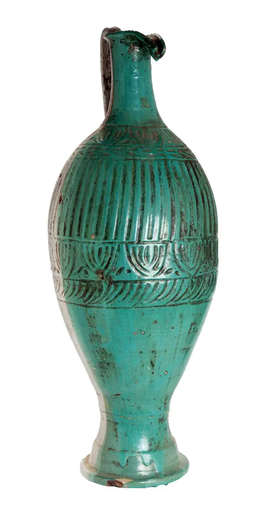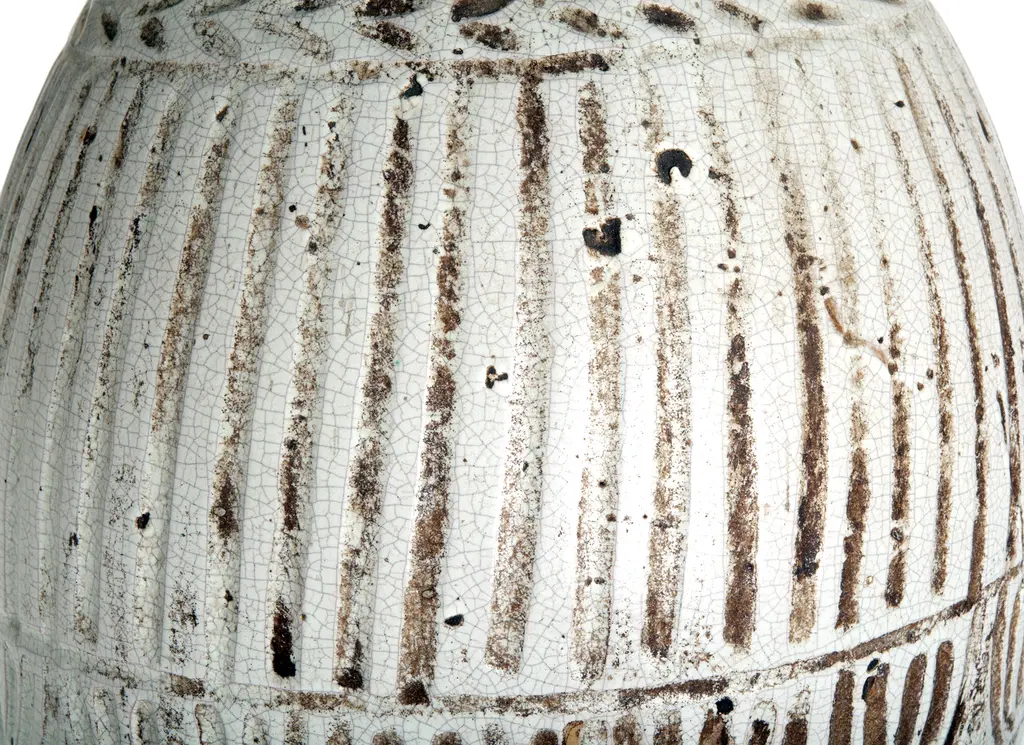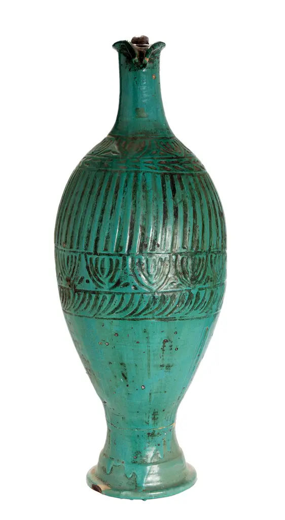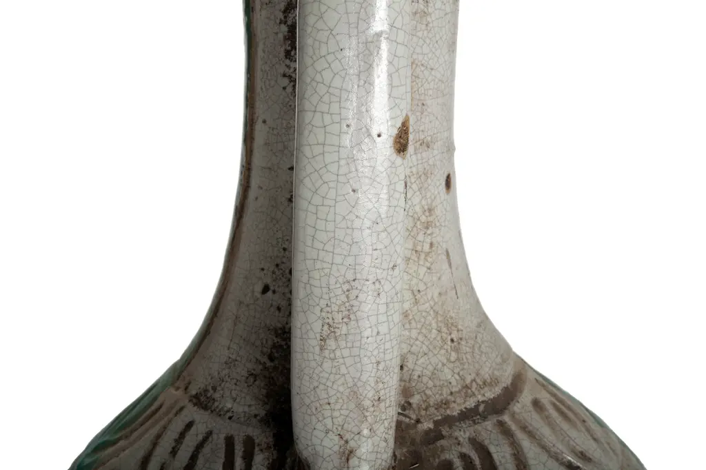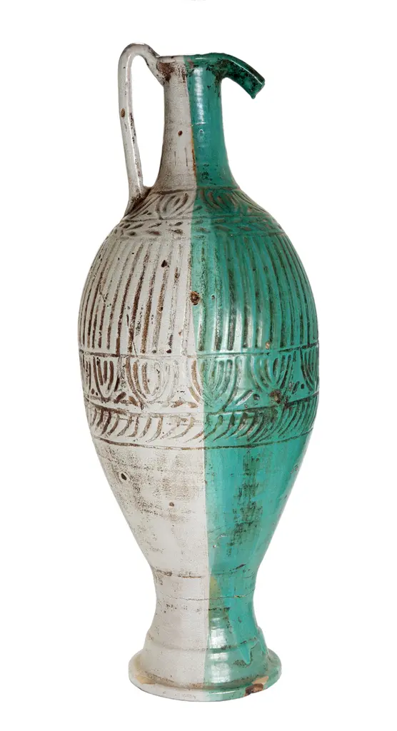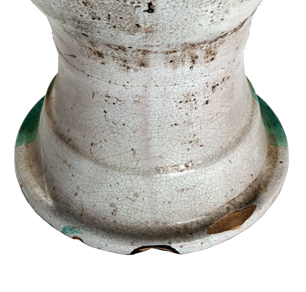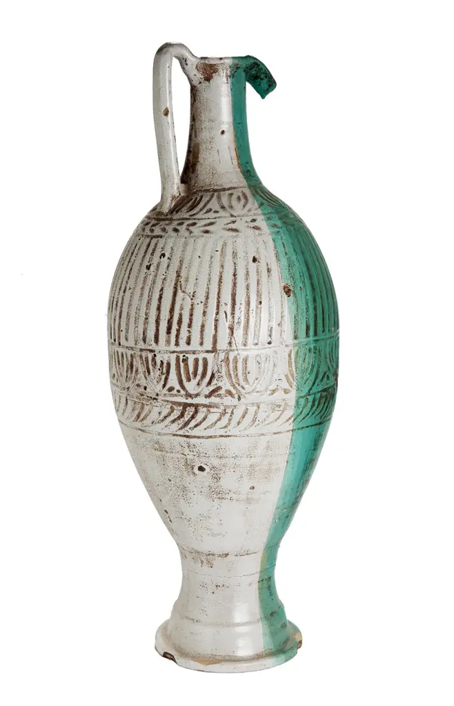 Large ocean green & white Moroccan ceramic urn, repaired at base. Purchased overseas.