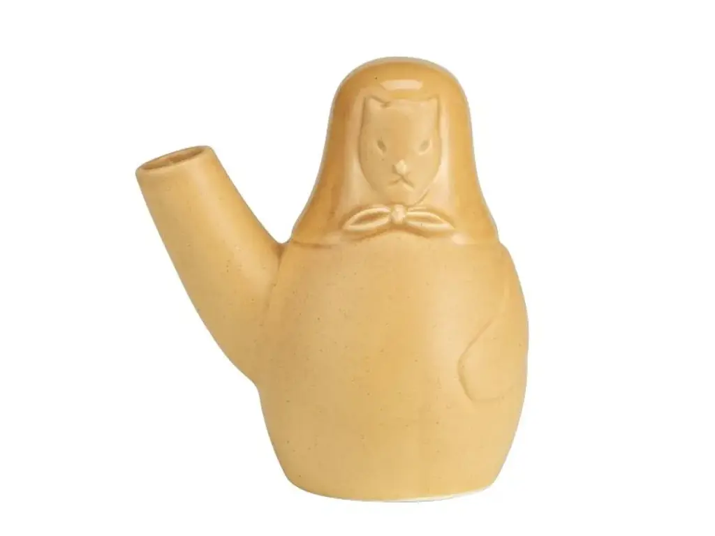 This ceramic vase is one of two inspired by a Finnish rite of spring. In April, Finnish children welcome the end of winter by dressing up as witches and decorating willow twigs with feathers and small embellishments. Going door to door, the little witches expect small treats in return for their blessing. To wish their neighbours a healthy year, they say “Virvon, varvon, tuoreeks terveeks, tulevaks vuodeks; vitsa sulle, palkka mulle.” Or, “I wave a twig for a fresh and healthy year ahead; a twig for you, a treat for me!” This witch is accompanied by a canine familiar, the Easter Dog Vase. The Easter Witch Vase belongs to a family of seven handmade ceramic objects created by COMPANY for Artek’s FIN/JPN Friendship Collection.What gifts did the Finnish delegation bring to Japan in 1919 to inaugurate Finnish-Japanese diplomatic relations? With this question in mind, Finnish-Korean design-duo COMPANY created their contribution to the FIN/JPN Friendship Collection. The family of six ceramic objects are both decorative and functional; each celebrates a seasonal ritual belonging to the Finnish calendar. Expressive and of disarming naiveté, the family of objects evokes the animist, pagan pasts of Finland. They are hand-made by Artek’s ceramic partner in Portugal, based on a close collaborative development process with COMPANY founders Aamu Song and Johan Olin.