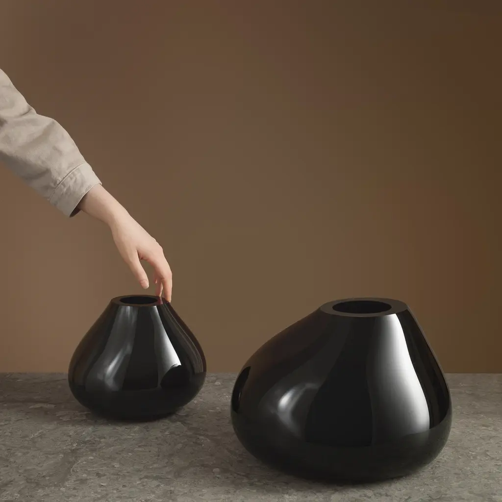 Defined by its irregular shapes and deep black color, the Ebon Black Vase Collection injects personality into any space. Due to the glassmaking process, each mouthblown vase is a unique design that functions equally well as a design object or as a vessel to display flowers.