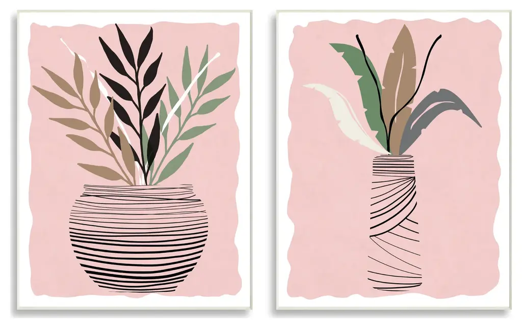 Eccentric Tropical Fern Leaves Abstract Plant Vase, 2Pc, Each 13 X 19