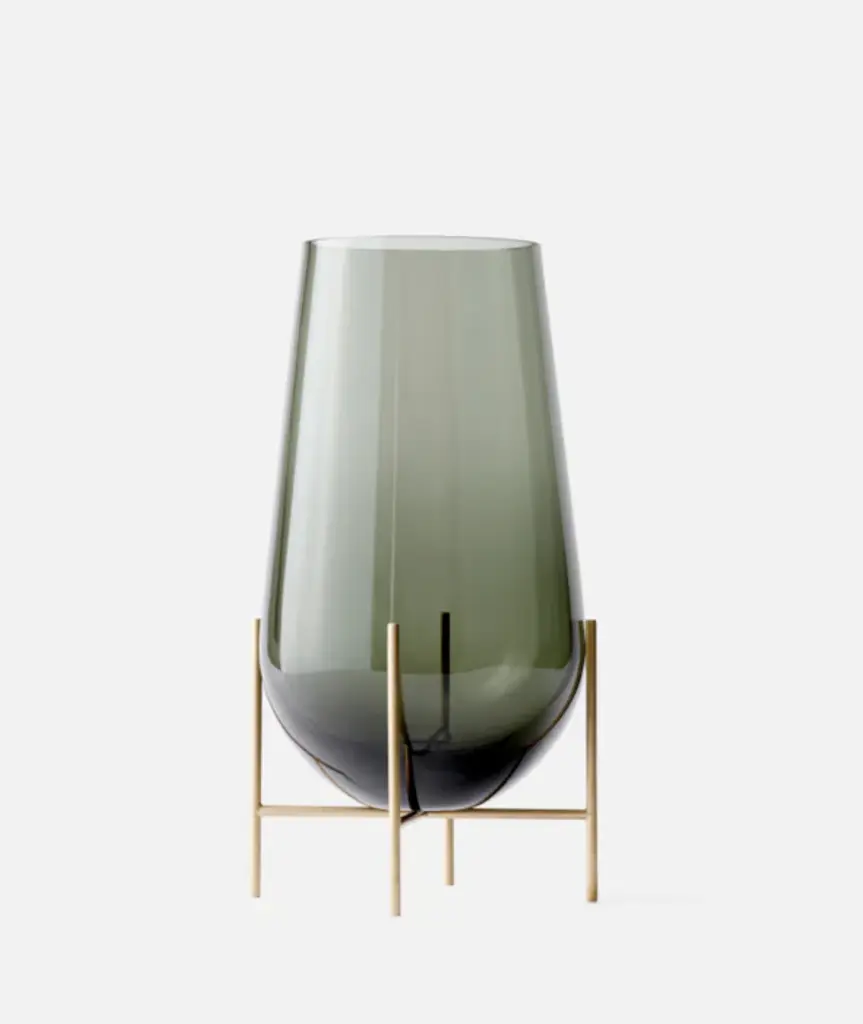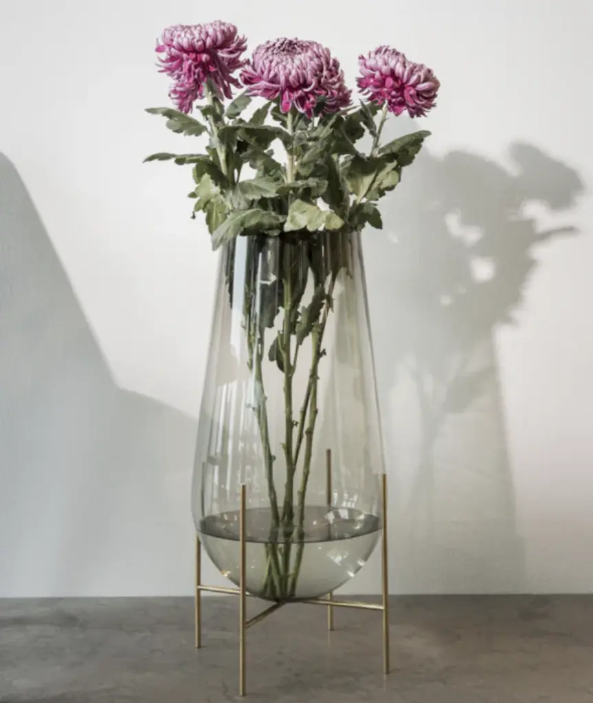 Reimagining the classic elegance of glass vases and bowls, the Echasse Series brings a minimalist silhouette with distinguished, playful edge to modern and traditional spaces. The slender, stilt-like supporting legs delicately suspend the glass forms, creating a sense of lightness while ensuring stability. The Echasse Vase was inspired by laboratory test tubes. The drop-shaped form is as elegant when holding flowers on a desk, living room floor, or nightstand as it is when left unfilled.