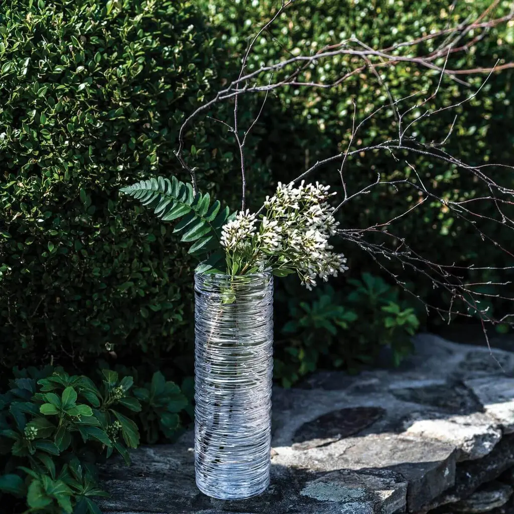 Inspired by the flowing waterways of Vermont, the Echo Lake Vase from Simon Pearce is a bold, artistic interpretation of the glassblower’s craft. Made in the USA, this unique vase is handcrafted by master artisans. In a display of incredible skill, fine strands of molten glass are nimbly wrapped around the cylindrical form to create a natural, organic silhouette that captures the feeling of movement. A fusion of natural inspiration and artisanal skill, it’s a piece of functional art. Highlights: