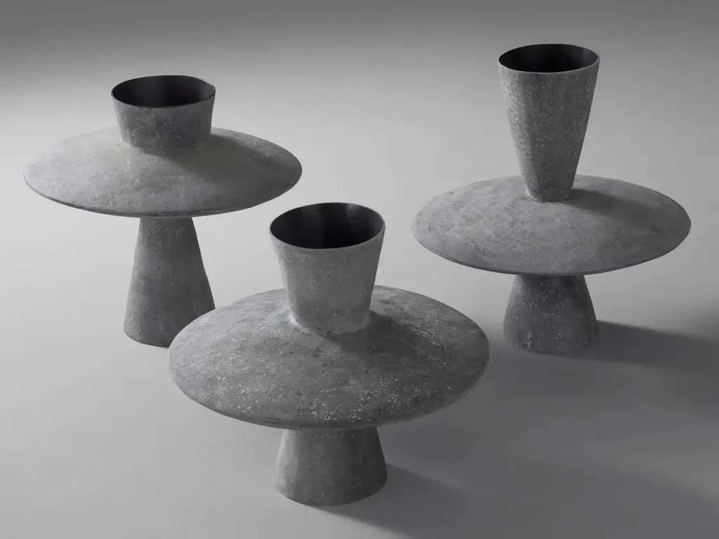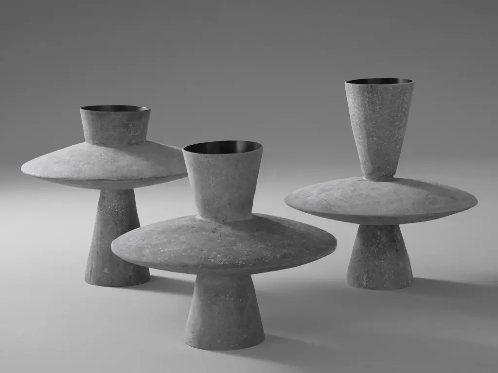Echo vase by Imperfettolab 2017 Dimensions: D 40 x H 42 cm Materials: Fibreglass The design with peculiar geometries makes this vase a singular object with a distinctive character. The five variations of its shape increase its versatility.