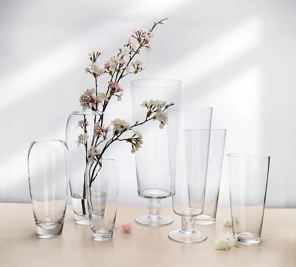 Indoors or out, give your space a subtle, layered look with this artful glassware series. As hurricane lanterns, they create a welcoming, intimate glow. Placed together as vases, empty or brimming with botanicals, their designs play with light, transparency, and reflection, adding warmth and sophistication to your decor.