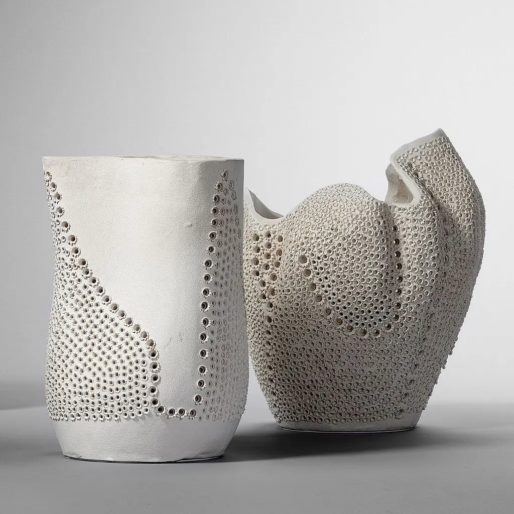 The heavens and the earth (as represented by fine porcelain) finally meet in this series of celestially inspired vases. With their sublimely perforated patterns, organic shapes, and matte finishes they beautifully capture the eternal allure of our stars and moon. The vases are for decorative use only and do not hold water. Each is created by hand and will vary slightly, ensuring each is an individual work of art.