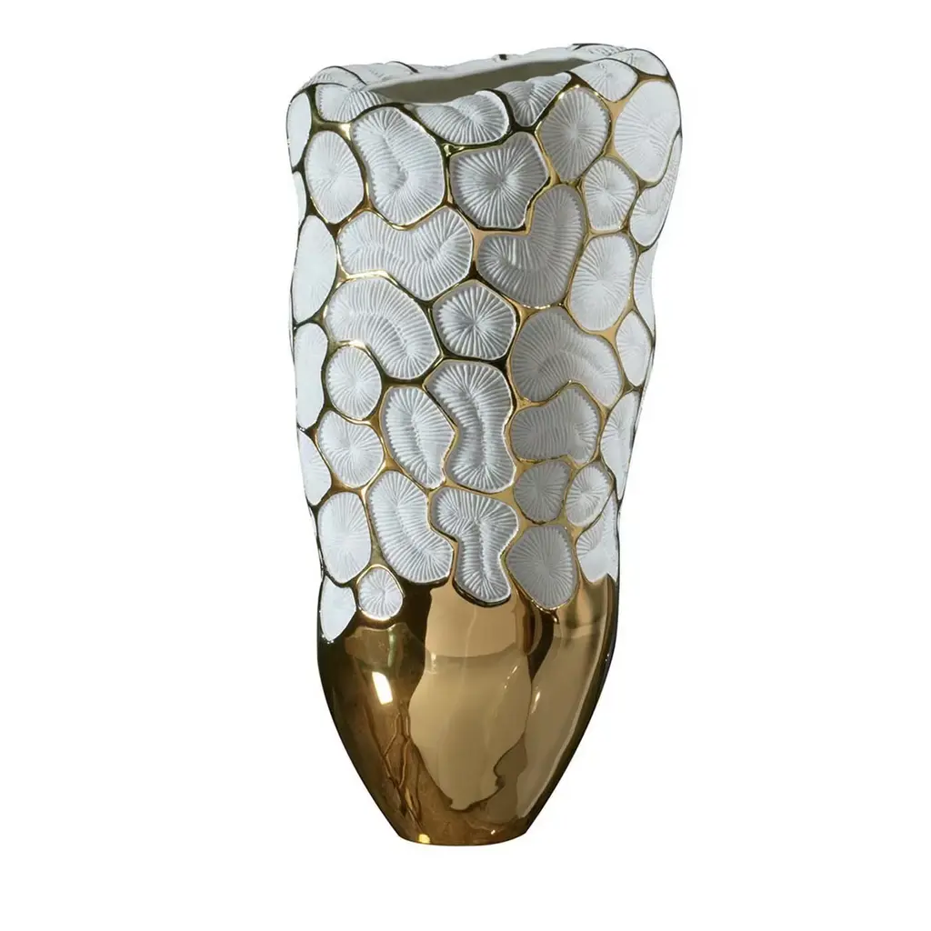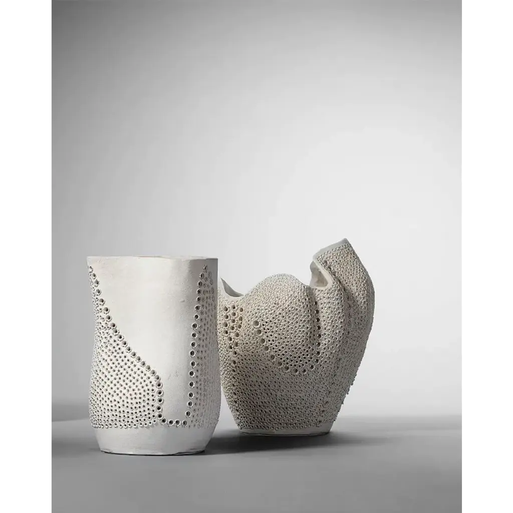 Sure to be a star among your collection, this decorative vase captures the celestial beauty of our moon in porcelain. Featuring an organic shape, matte finish and bold perforated patterns that are created one-at-a-time by talented artisans, ensuring each is an individual work of art.