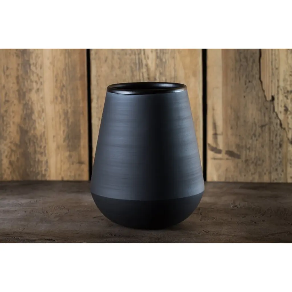 The Eclipse vase is part of a tableware collection designed by Laima Grigone for the Latvian Vaidava. The ceramic vase is made using Terra Sigillata technique that was developed in ancient Rome, and the inside is finished with a lead-free glaze. Characterized by clean, smooth lines and deep black color, the Eclipse range creates a stunning table setting either by itself or paired with tableware of other colors and shapes. Handmade in Vaidava’s own pottery in Latvia. Packed in a recycled cardboard box.