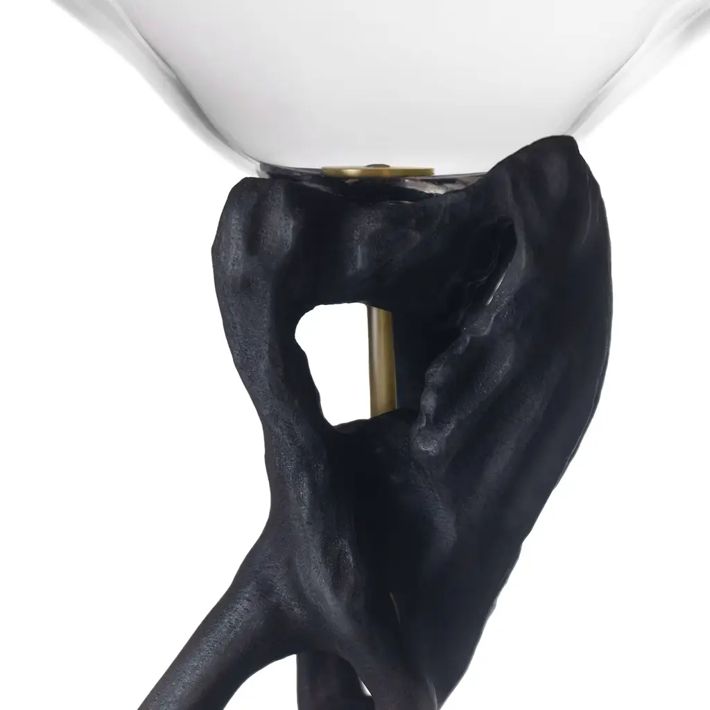 The Eclipsed Core decorative glass from the Endless Lines Collection seamlessly blends form and function. Expertly crafted from clear and solid black glass, this piece showcases a striking interplay of transparency and opacity, emphasizing the fluidity of its design. Its interwoven curves create a captivating visual effect, inviting exploration of the intricate lines that traverse its surface. Inspired by natural elements, the glass merges solid and void through a meticulous excavation process that energizes the material, adding depth and dimension. Ideal for modern or eclectic interiors, the Eclipsed Core glass highlights the beauty found in the interaction of shape, light, and material. Endless Lines is a collaboration between Simone Crestani and Hazal Kurtulus.