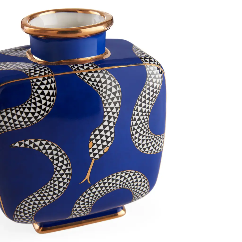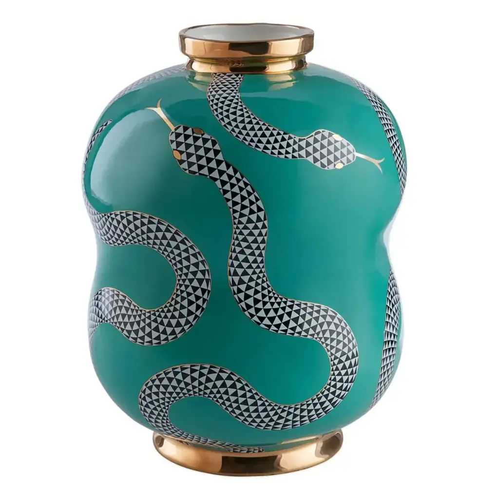 Serpent Chic. A striking addition to any table, shelf, or mantel, our Eden vases feature our signature slithering serpents on punchy pop-toned hues. Sparkling gold accents add an air of daring and glamour. Eden’s classic silhouettes mix well with others, or style the collection together for extra bite.
