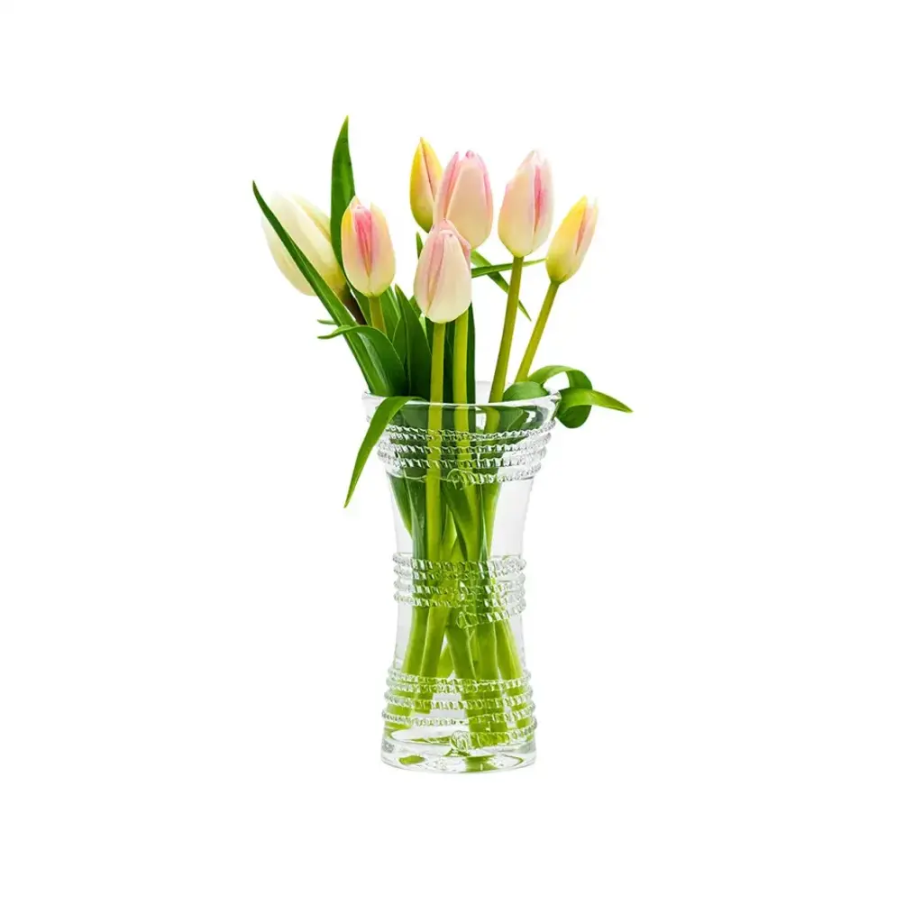With a corseted waistline festooned with our swirling and sparkling thread at the top, middle, and base, this romantic silhouette sets off blooms to absolute perfection. Petite in stature, this 6” vessel is lovely to embellish small spaces (think bedside posies, lilacs scenting your favorite reading nook) or in multiples displayed in unison down a dinner table or along a mantle for a cohesive look. Based in Connecticut, Juliska is committed to bringing elegant European design into our modern homes. Since its founding in 2001, when David and Capucine Gooding began by working with artisans outside of Prague to reproduce antique Bohemian glass pieces, every piece from Juliska has shared a rich heritage spanning six centuries of European design. Juliska's creations are timeless, romantic and effortlessly chic.