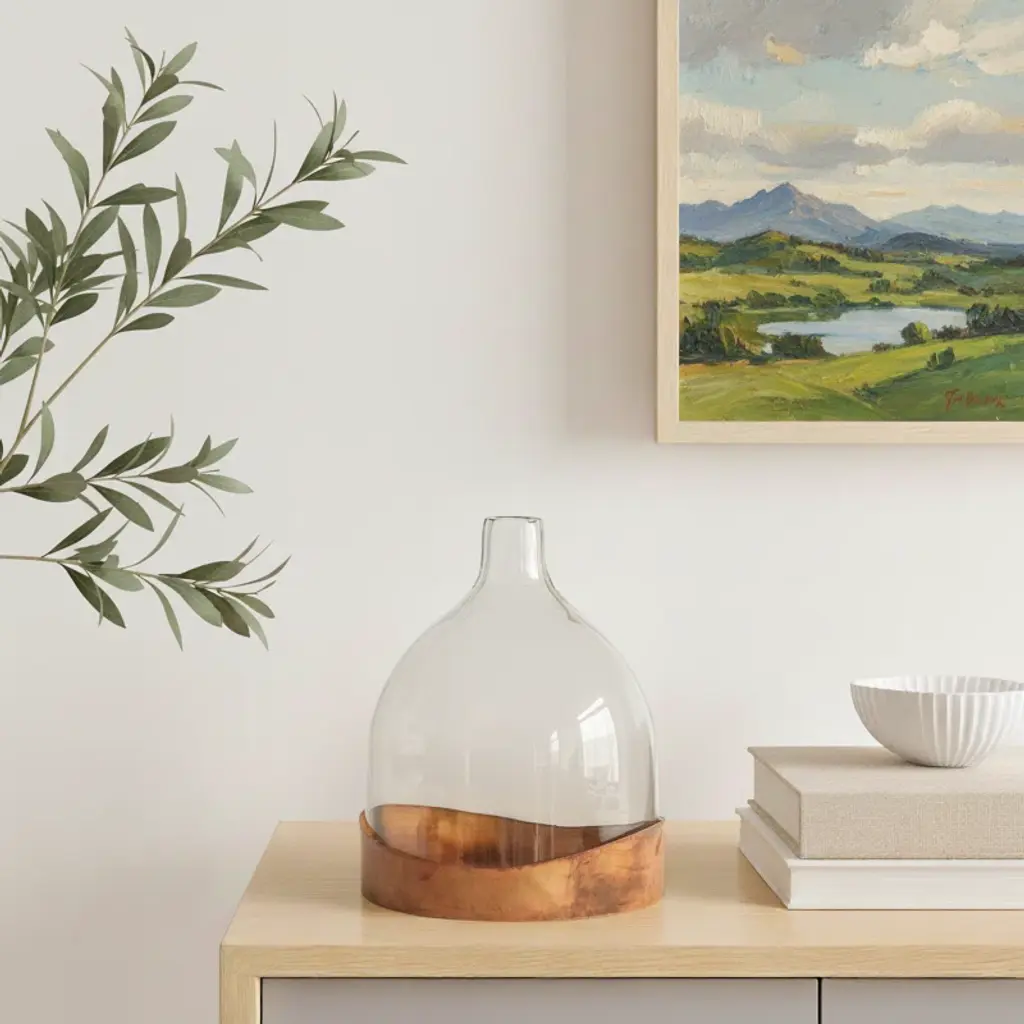 Elevate your home decor with this elegant novelty-shaped table vase. Skillfully crafted from a combination of glass and metal, this vase is a true work of art. Its watertight design ensures that your favorite blooms stay fresh and vibrant. Ideal for indoor use, this vase is a versatile addition to any living room, dining area, or bedroom. Its timeless appeal and graceful silhouette make it a must-have for those who appreciate refined style. Plus, it's designed for residential use, making it a perfect fit for your home.