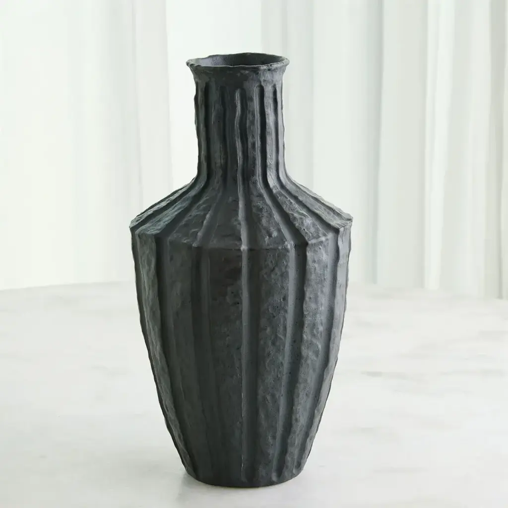 The Emperor Vases are crafted from black Portuguese slip-molded ceramic with a textured exterior. From a fashion forward perspective, Global Views offers accessories, furniture, statement lighting, and an assortment of rugs and mirrors to add beauty and joy to your home.