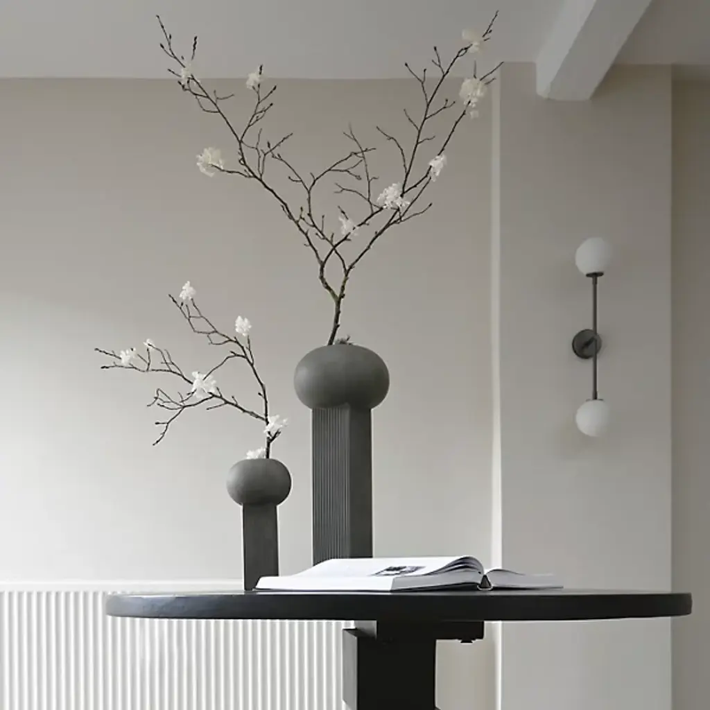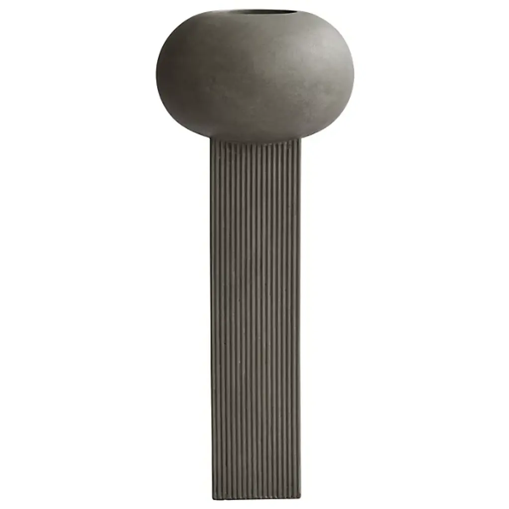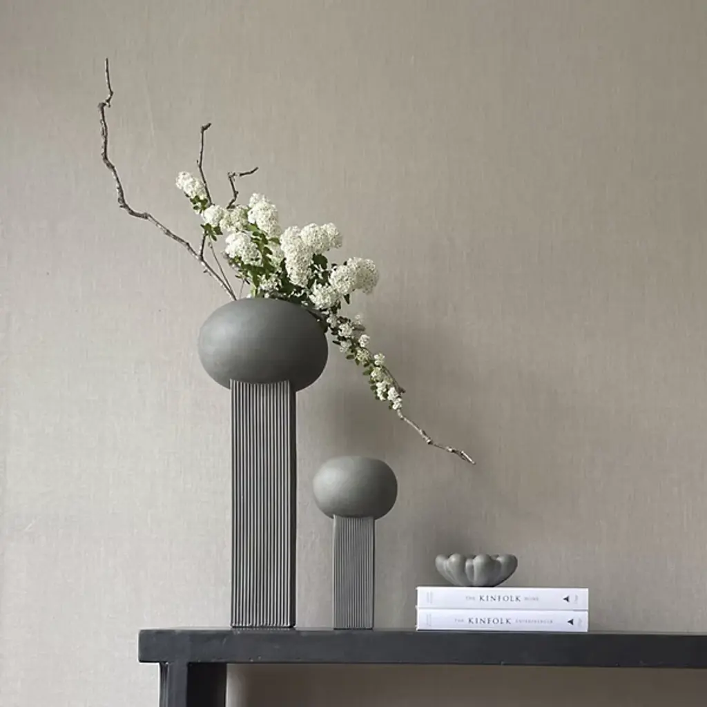 The Empire Vase from 101 Copenhagen brings architectural elegance to flat surfaces with its slim, vertical design utilizing vertical accents inspired by building facades. Designed by Kristian Sofus Hansen and Tommy Hyldahl, each piece is made from ceramic with a hand-glazed finish. Each vase features a vertically lined surface that plays with the way light and shadow shift throughout the day. The simple form is ideal for tall floral arrangements or long branches, and it includes a protective bag for fresh flowers, ensuring both beauty and long-lasting function.