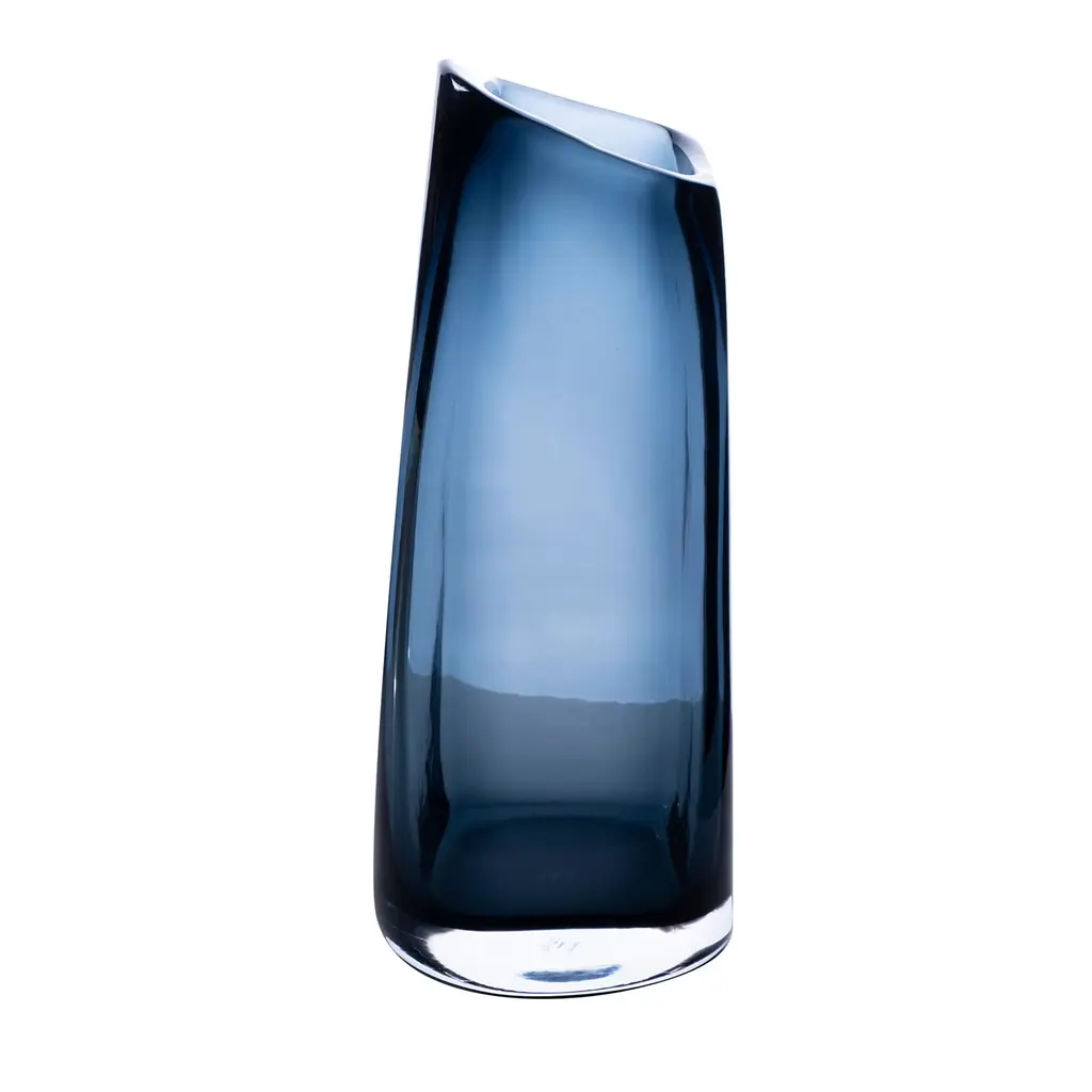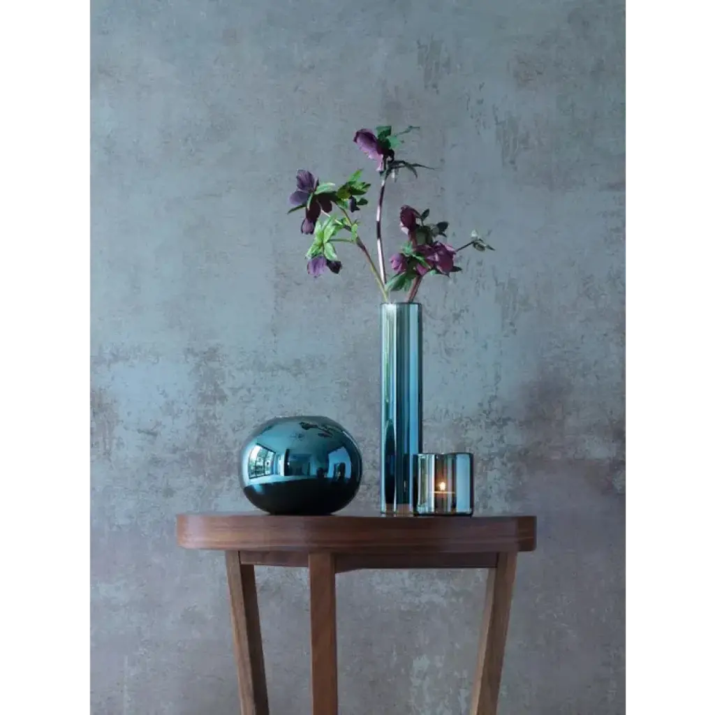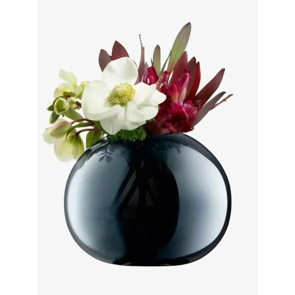 A spherical mouth-blown vase with a lustre finish.