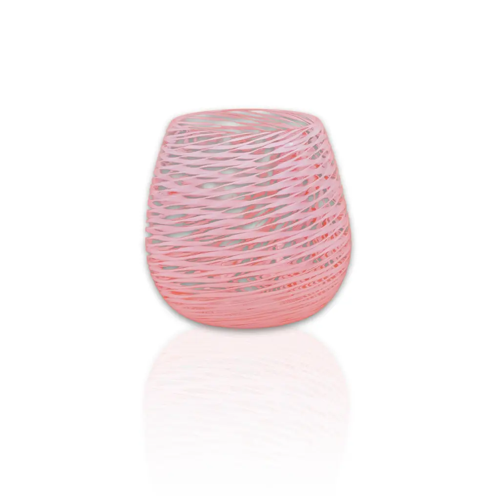 A handmade glass vase with cross hatch etching creates a nice subtle texture on this aqua and white vase.