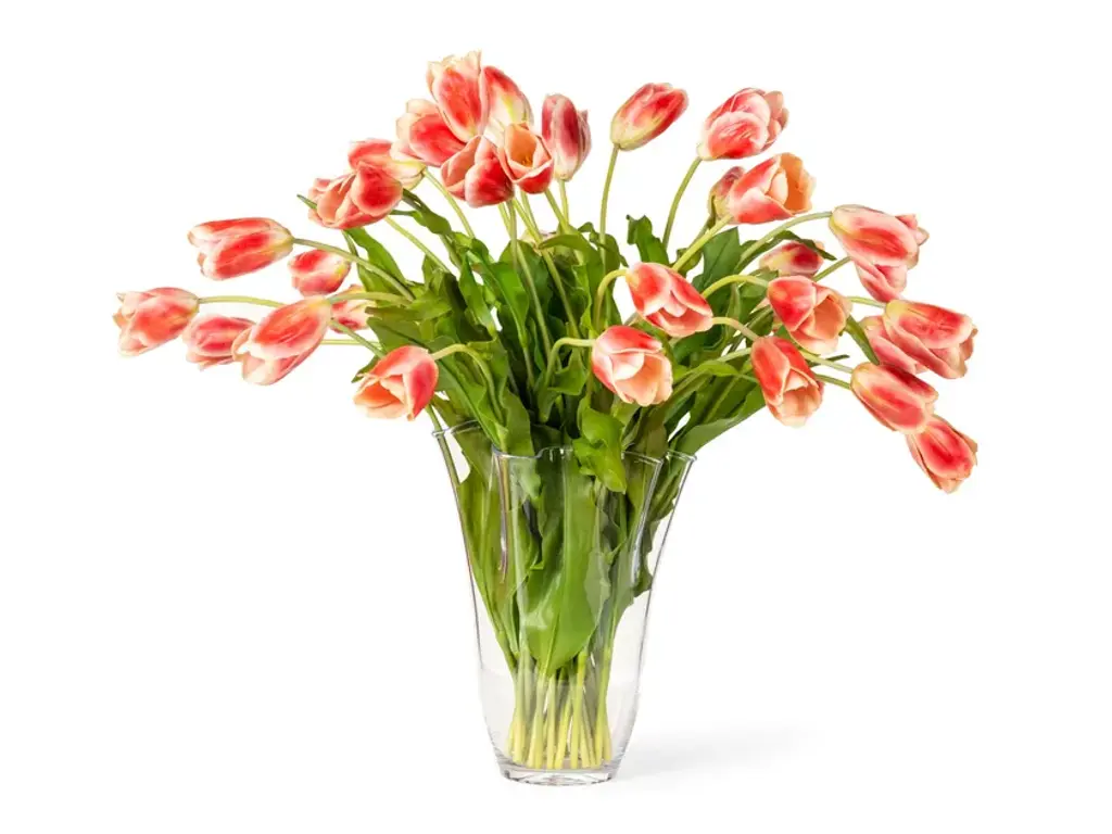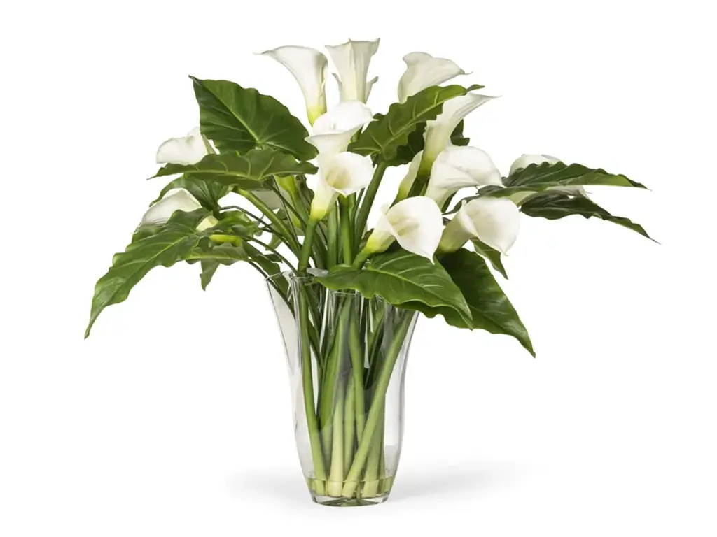 Eternity Fazzoletto is a faux flower arrangement in glass vase with artificial flowers and “water illusion”, created by floral designers. Ideal for interior decor or weddings and events setting. Available in different variants.PRODUCT VARIANTS:1142550.31: Eternity Fazzoletto Tulip1142547.95: Eternity Fazzoletto Calla