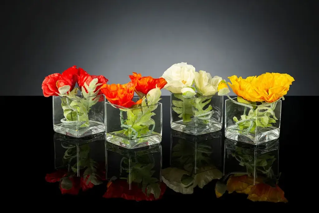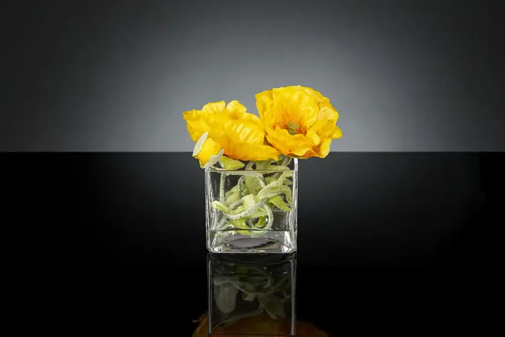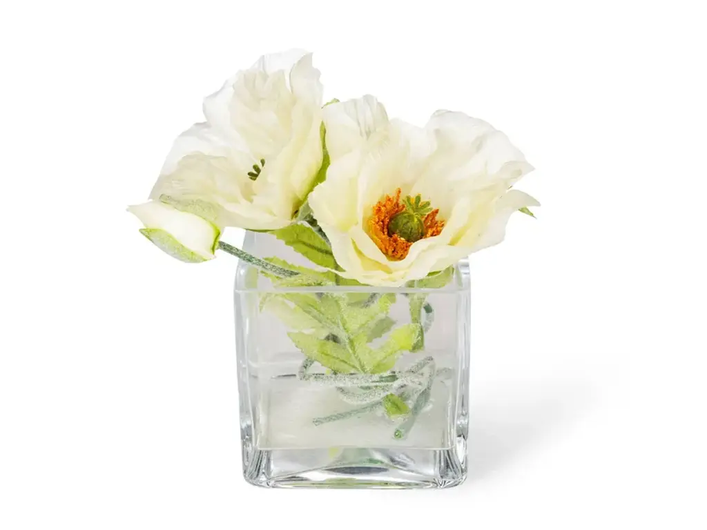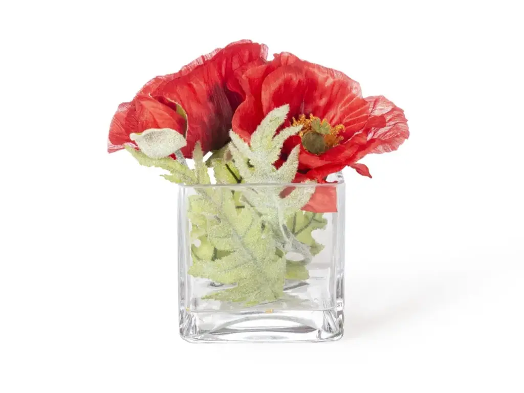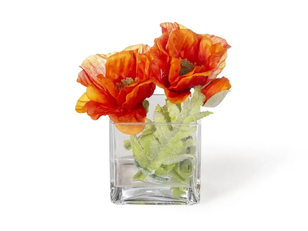 Eternity Poppy Cube is a faux flower arrangement in glass vase with artificial flowers and “water illusion”, created by floral designers. Ideal for interior decor or weddings and events setting.PRODUCT CODES:1142589.20: Eternity Poppy Cube - Orange 1142589.30: Eternity Poppy Cube - Red 1142589.95: Eternity Poppy Cube - White