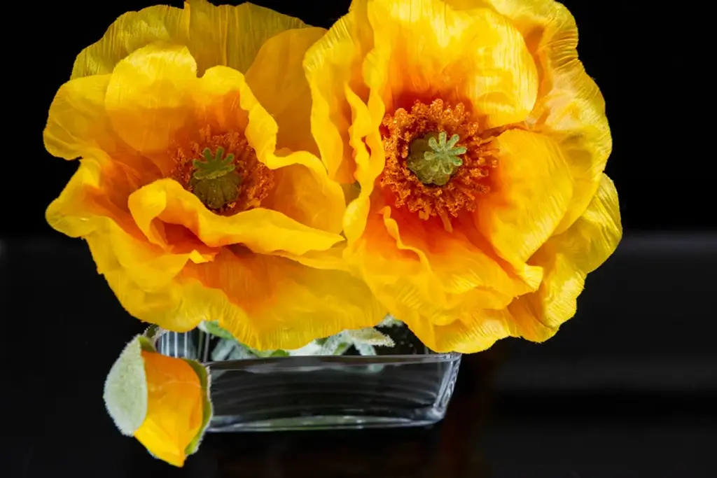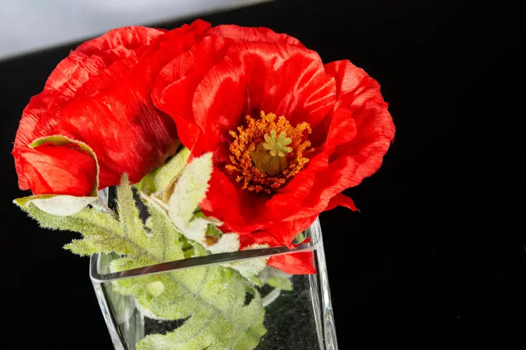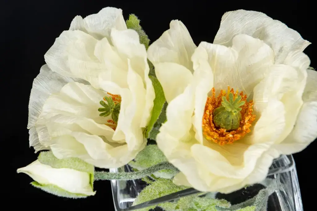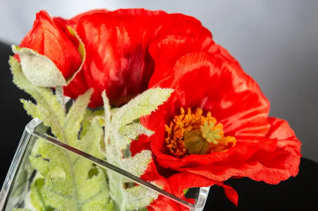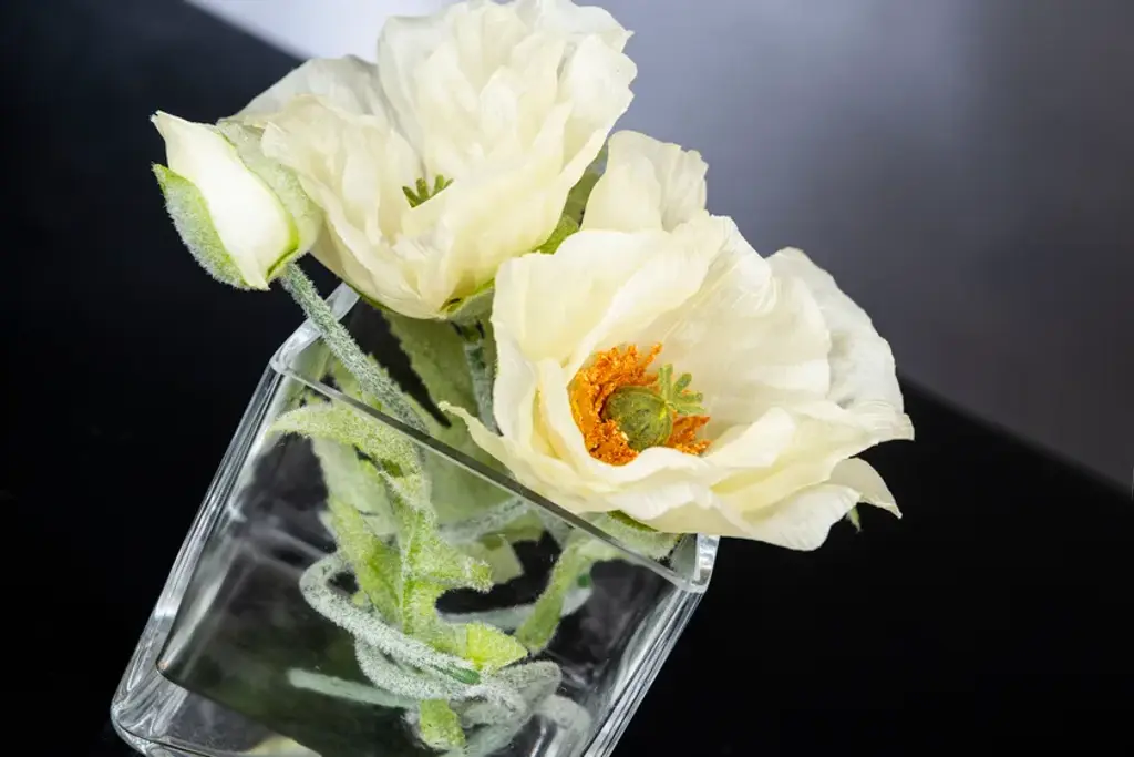 Eternity Poppy Cube is a faux flower arrangement in glass vase with artificial flowers and “water illusion”, created by floral designers. Ideal for interior decor or weddings and events setting.PRODUCT CODES:1142589.20: Eternity Poppy Cube - Orange 1142589.30: Eternity Poppy Cube - Red 1142589.95: Eternity Poppy Cube - White