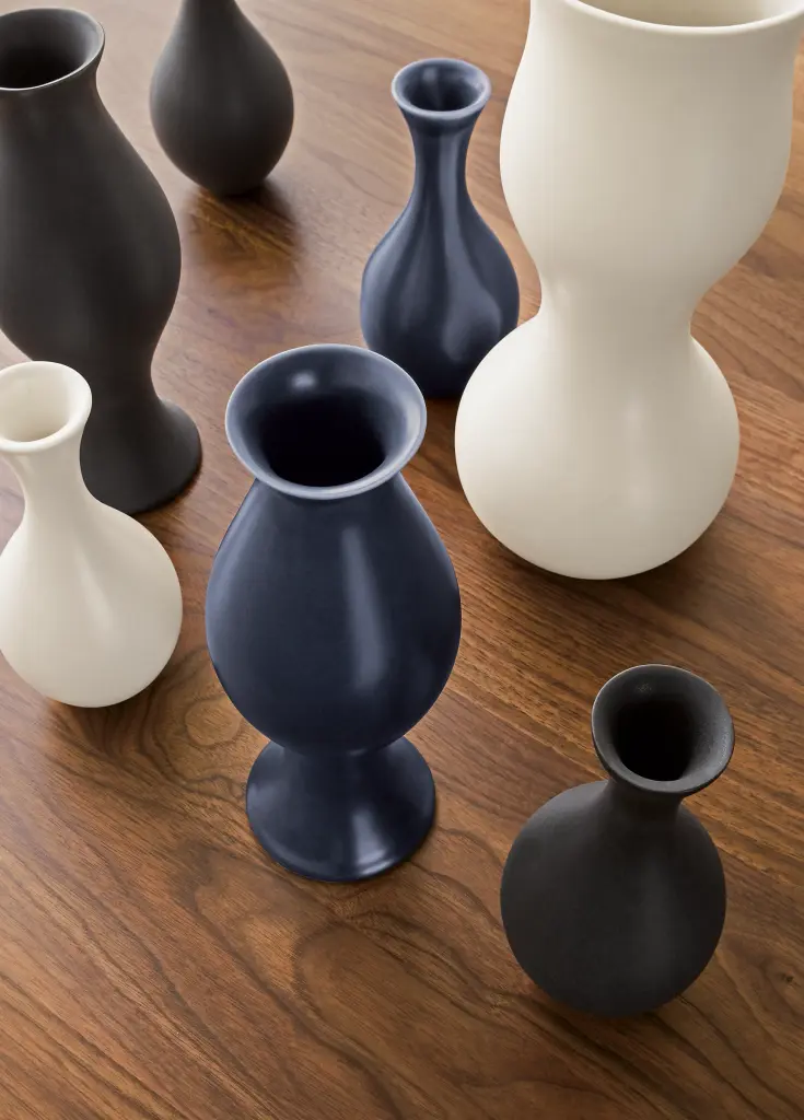 Born in Budapest in 1906, Eva Zeisel left a legacy of designs that are cherished around the world. Her gracefully curved porcelain vases are as elegant as they are timeless. Each piece is handcrafted in the New York studio of KleinReid. Group them together for a dramatic presentation or let one vase stand beautifully on its own. Carbon, grey, indigo and umber glazes are exclusive to Room & Board.
