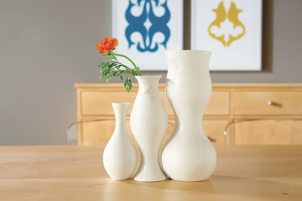Born in Budapest in 1906, Eva Zeisel left a legacy of designs that are cherished around the world. Her gracefully curved porcelain vases are as elegant as they are timeless. Each piece is handcrafted in the New York studio of KleinReid. Group them together for a dramatic presentation or let one vase stand beautifully on its own. Carbon, grey, indigo and umber glazes are exclusive to Room & Board.