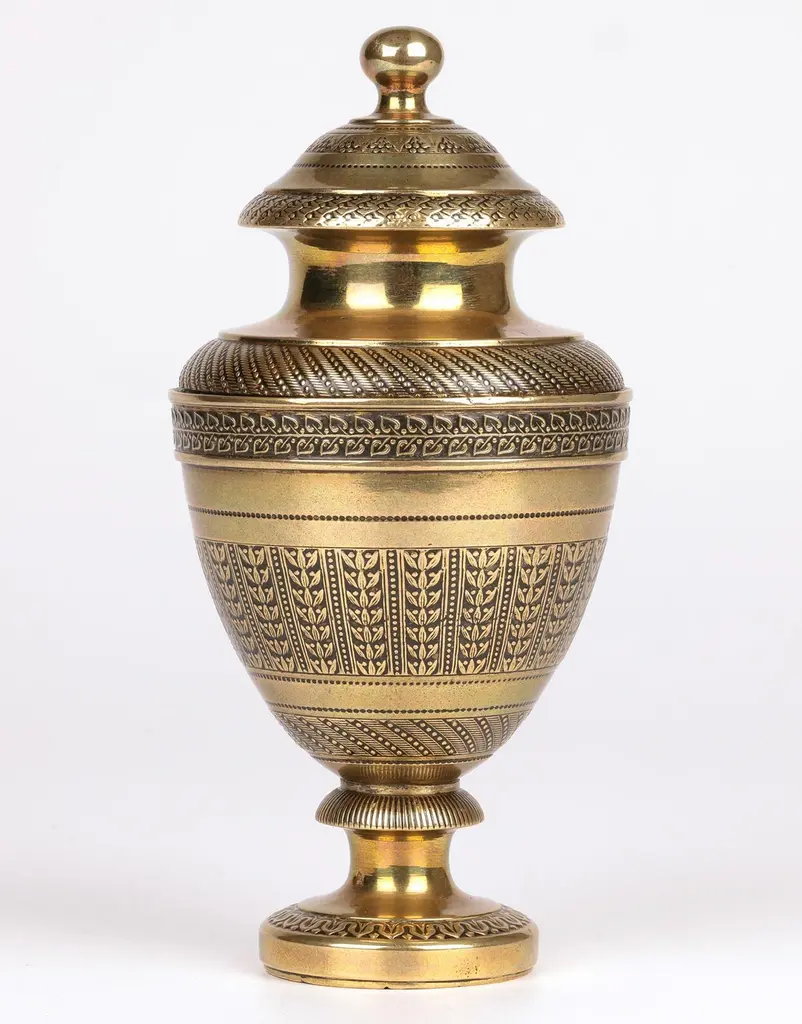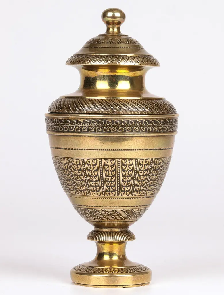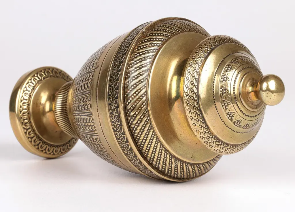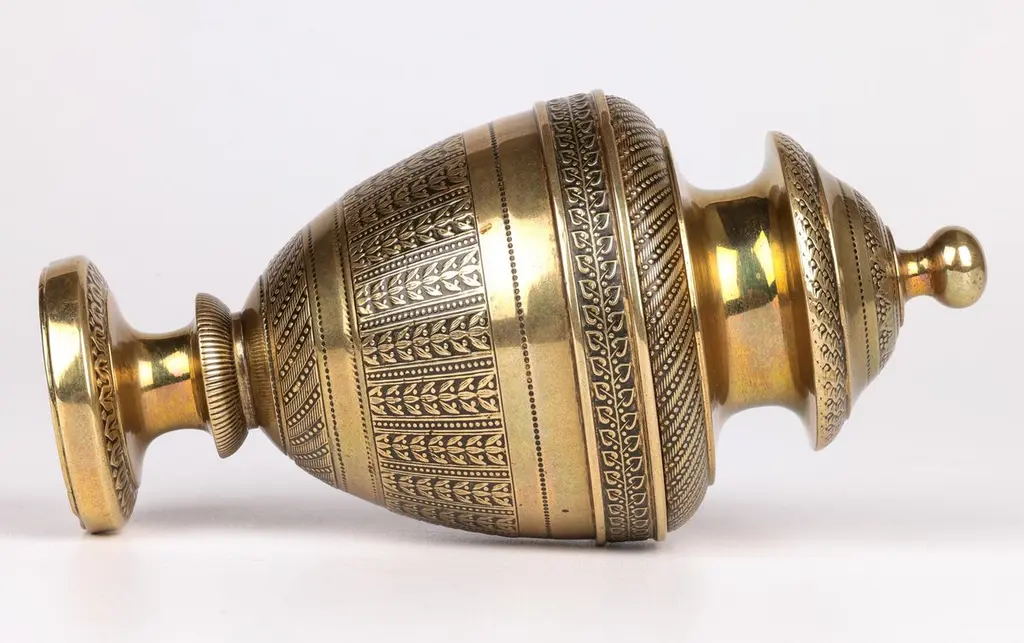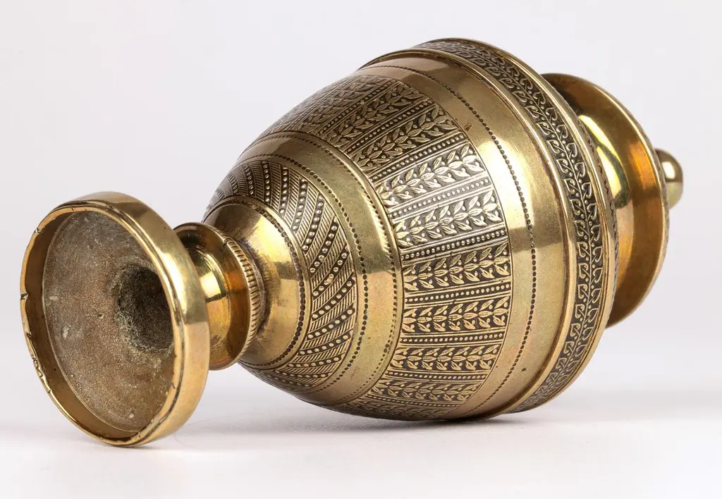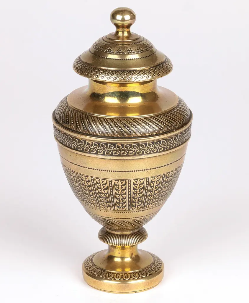 Exceptional Southeast Asian Brass Engine Turned Lidded Urn