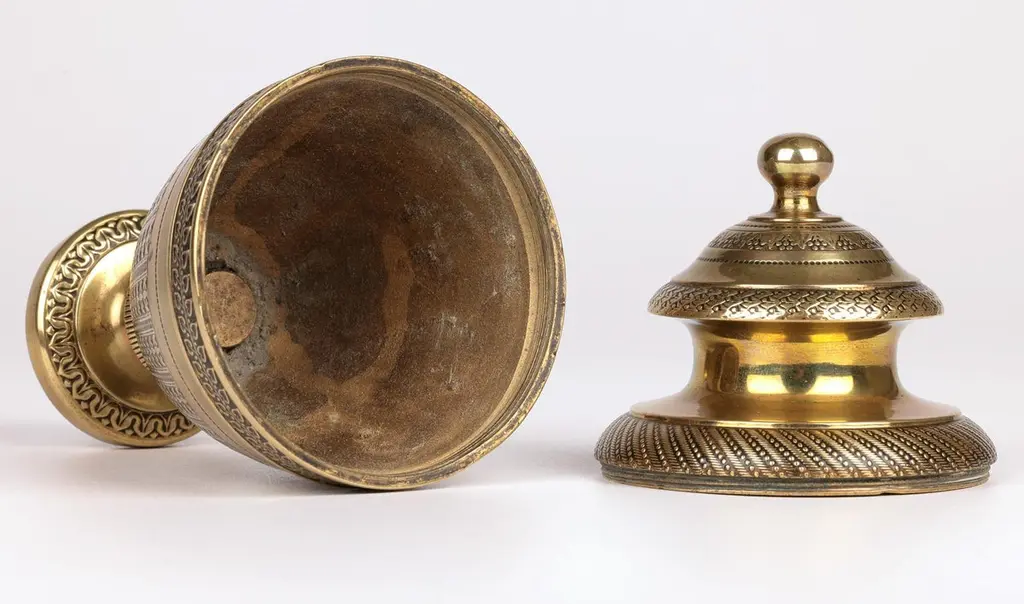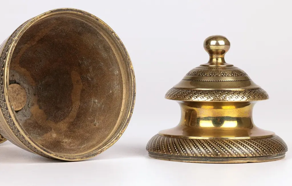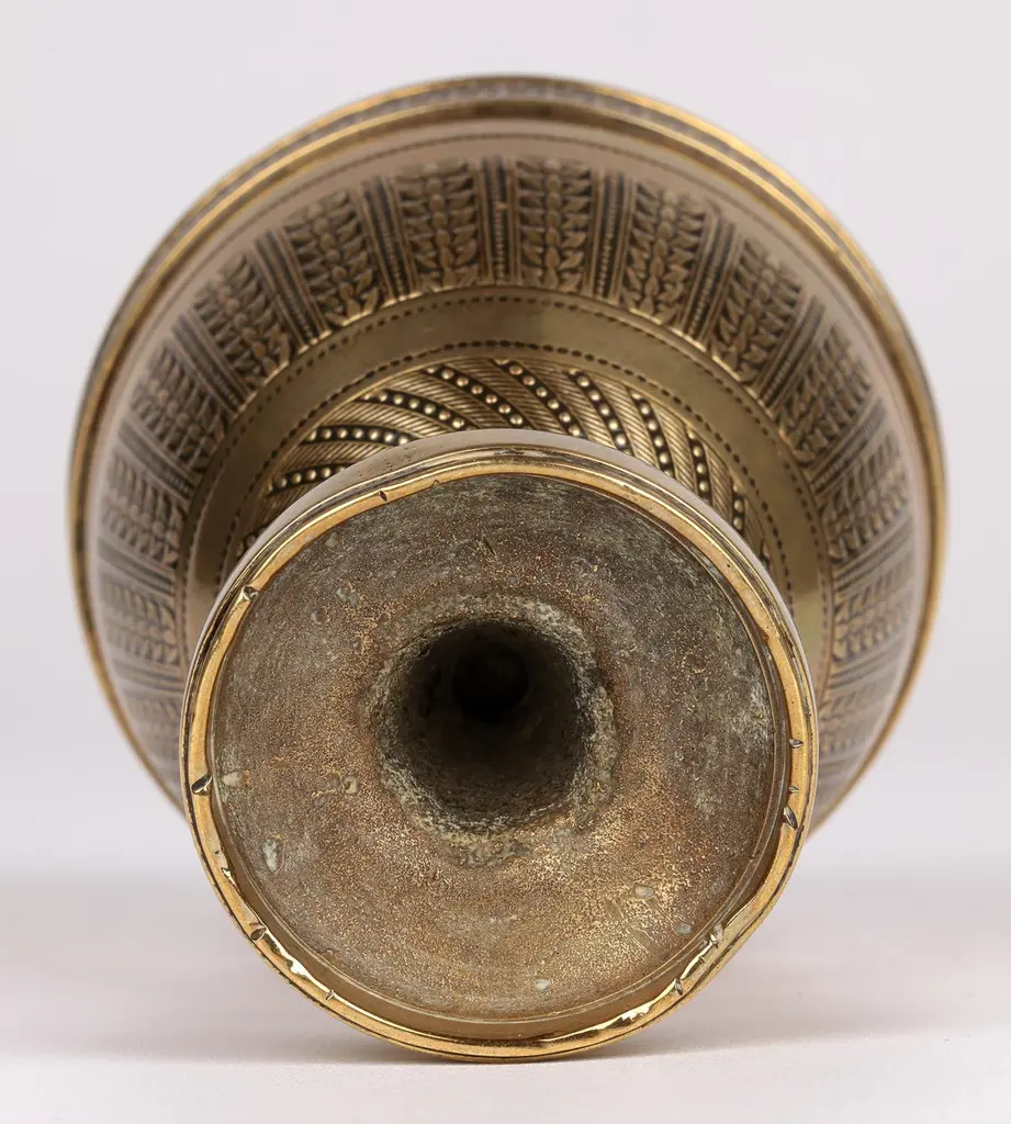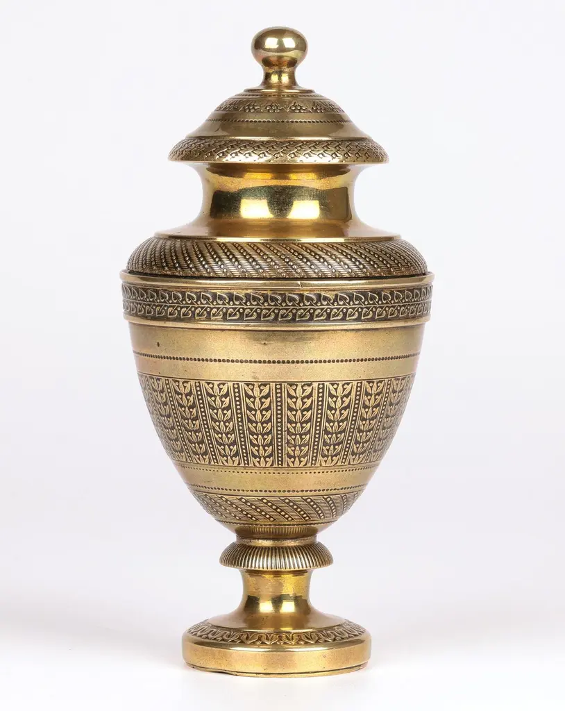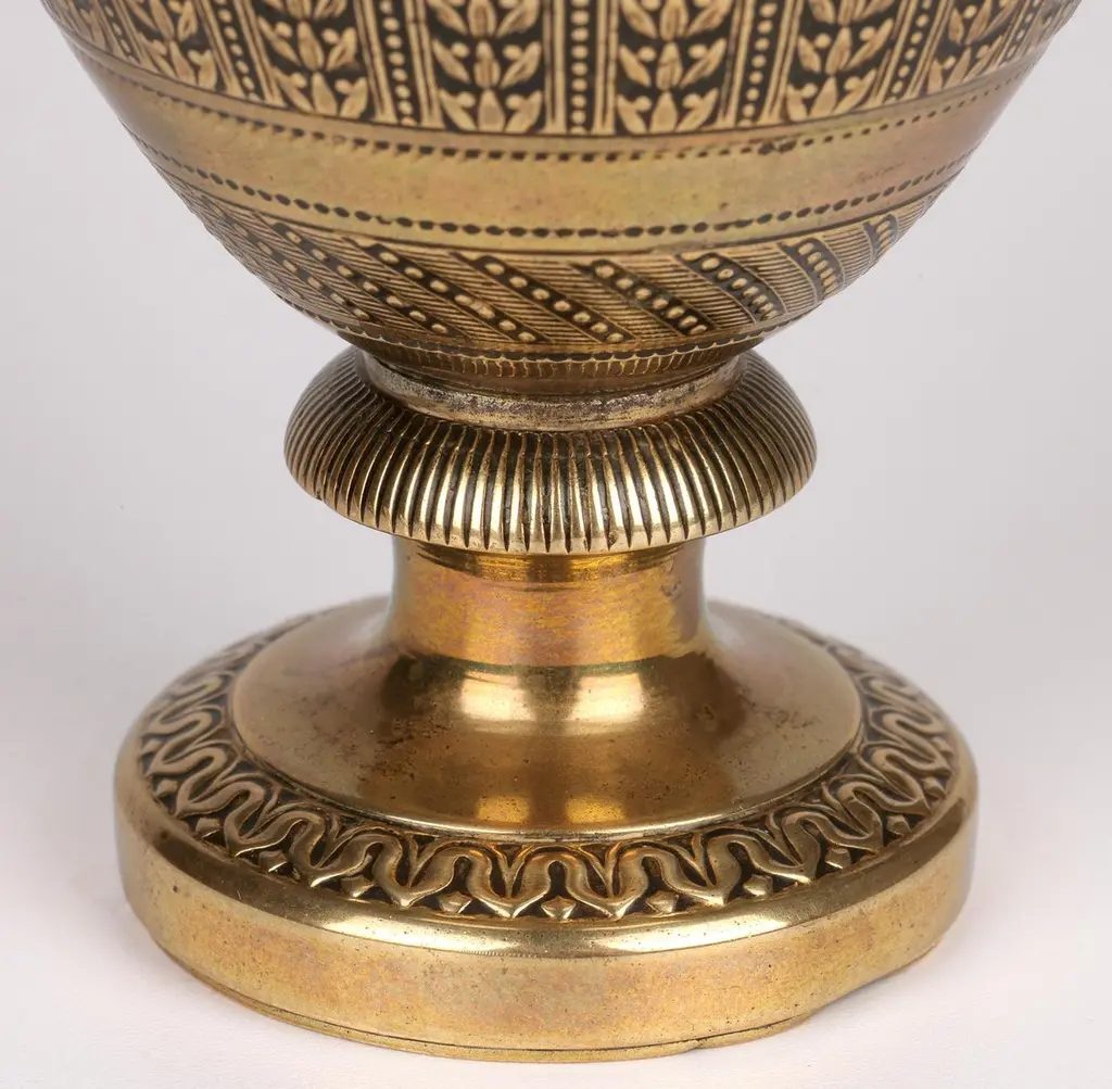 Exceptional Southeast Asian Brass Engine Turned Lidded Urn