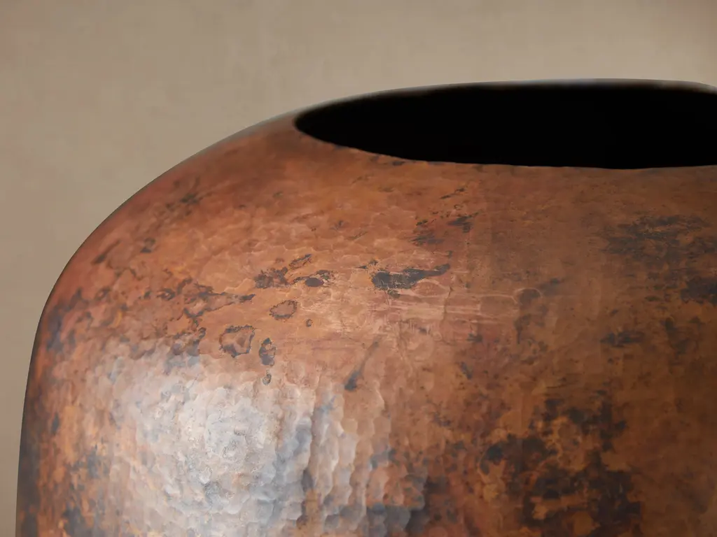 Handcrafted by Mexican metal artisans from solid copper, our Extra-Large Natural Copper Vase features a distressed metallic finish to elevate your greenery. Watertight.