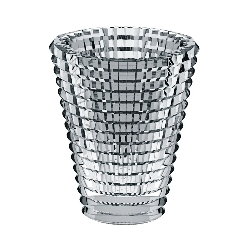 The wavy design of the crystal Eye vase comes from an extraordinary technique: exterior horizontal cuts and interior vertical cuts combine to produce a magic visual effect. With bevel cuts conjuring perpetual movement, the Eye vase is a spiral of light.