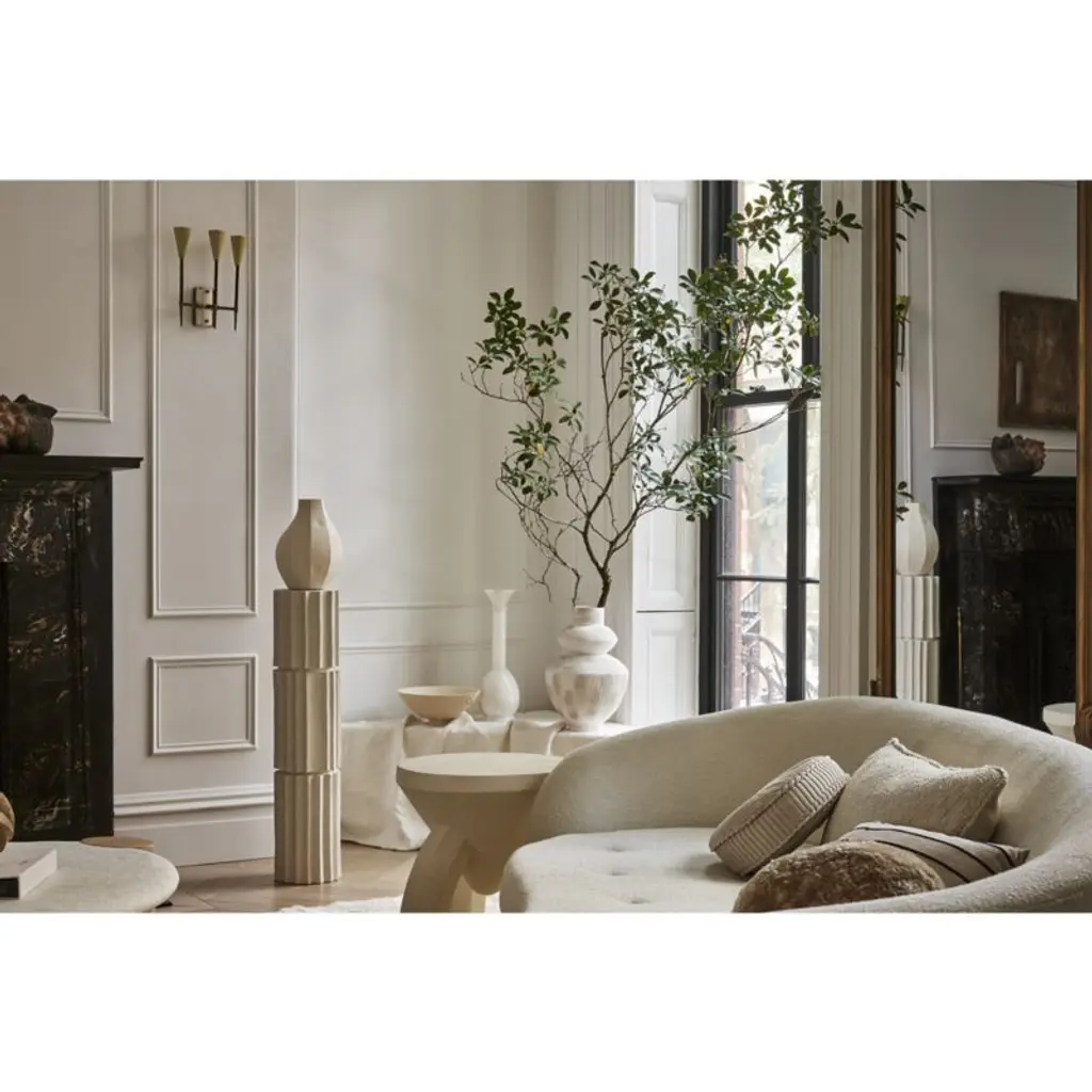 Everyone needs the perfect vase that acts as a decorative object or a container for dried botanicals. Enter Facette. Imperfect to the core with a texture inspired by hand-troweled finishes, the faceted white vase can stand alone or hold dried blooms. Athena Calderone especially loves a pair of her well-weighted vases displayed on an entry table with dried branches or a single petite Facette holding faux peonies atop a favorite book on a coffee table.We've partnered with bestselling author, interior designer and EyeSwoon founder Athena Calderone to bring you a collection of designs for meaningful, beautiful modern living. Inspired by ancient forms and European finds, Crate x Athena fine-tunes scale, materials and comfort to fit seamlessly into your home.