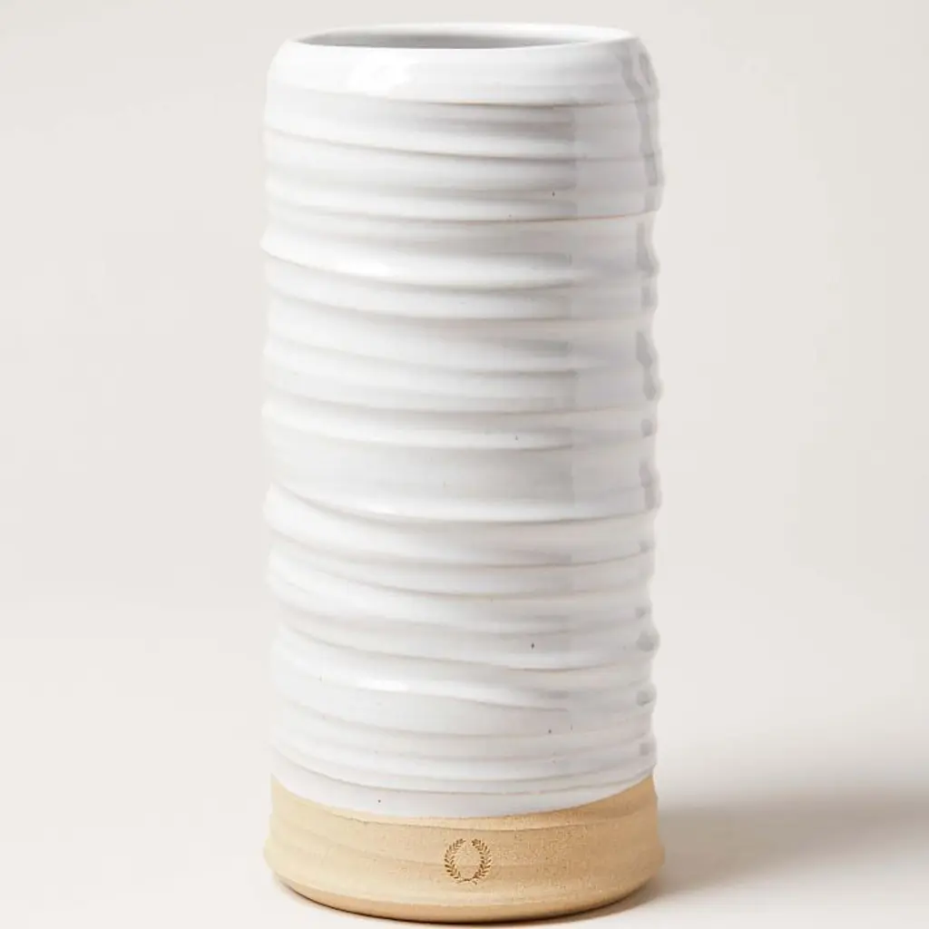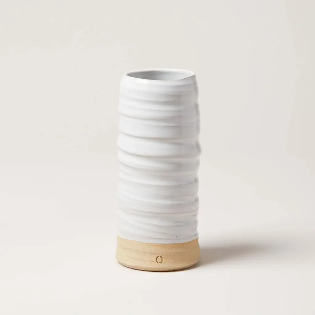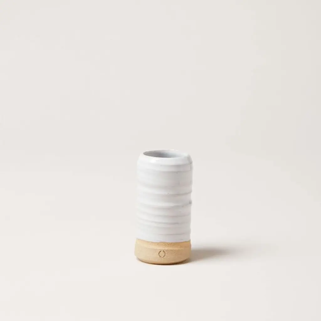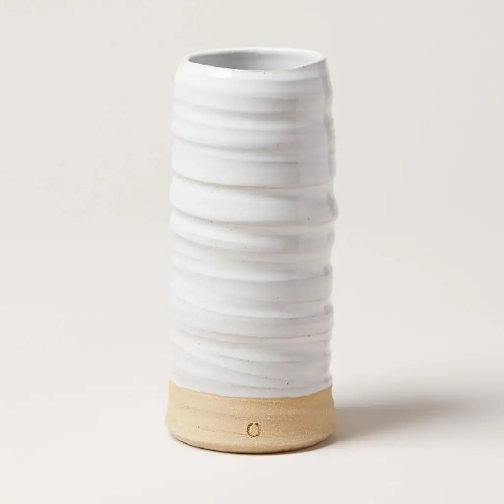 Using simple tools to create timeless home goods, Farmhouse Pottery’s old-world potters and makers hope their craft helps foster rediscoveries of a more sustainable lifestyle. Inspired by trees in their home state of Vermont, these American stoneware vases bring a touch of traditional charm to a table setting or decor still-life. Created by Farmhouse Pottery. Learn more. X-Small: 2"diam. x 4"h. S: 3.25"diam. x 6.5"h. M: 2"diam. x 8.25"h. L: 3.5"diam. x 10"h. X-Large: 5.25"diam. x 11.25"h. American-mined clay, glaze. Watertight. Sold individually. Handcrafted. Designed and made in Woodstock, VT. Your purchase of LOCAL items helps support small businesses right in your own backyard. Learn more.