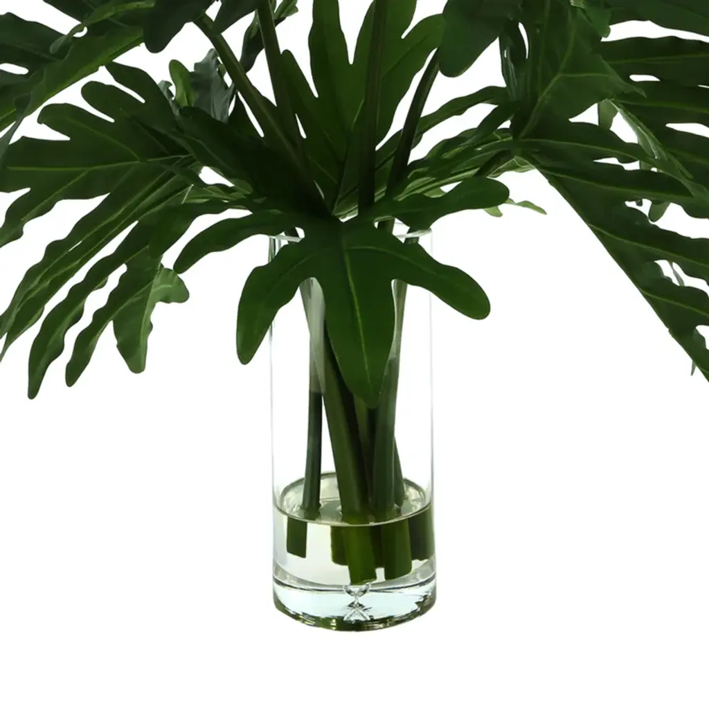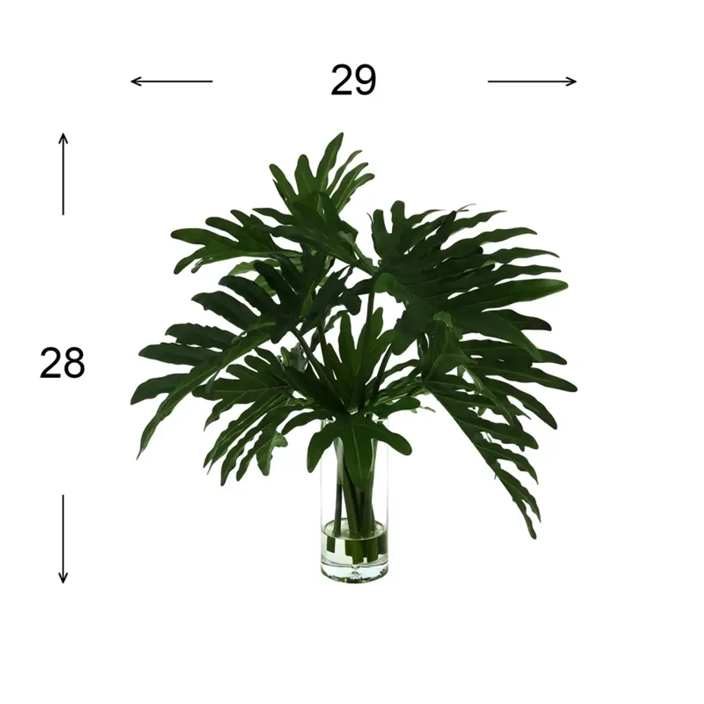 Introducing our realistic and maintenance-free artificial philodendron arrangement! This gorgeous piece will be the focal point of any room, with lifelike faux philodendron stems arranged in a clear glass bubble vase with realistic acrylic water. Arrives ready to be displayed, so just unbox and enjoy season after season!