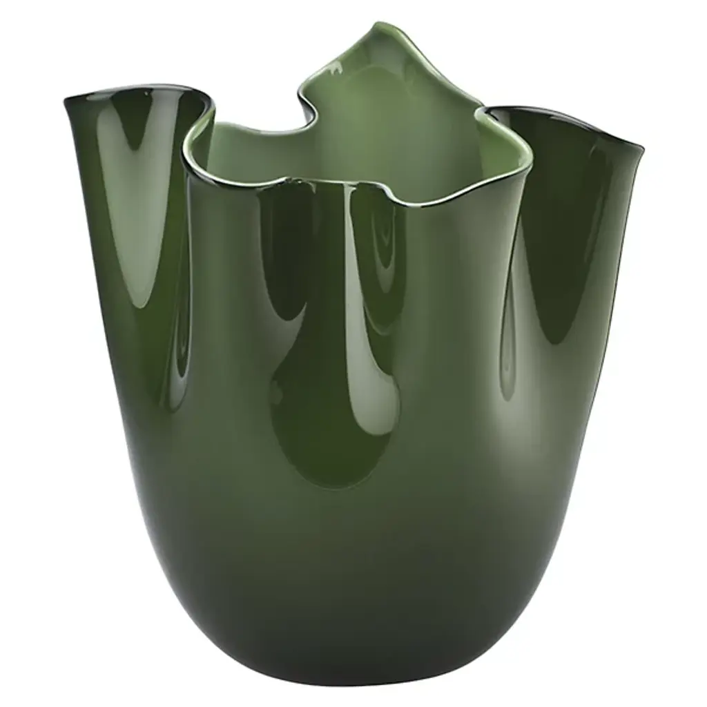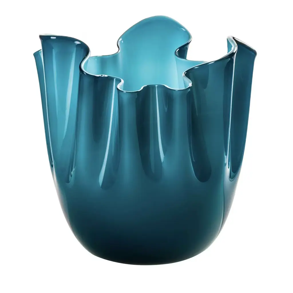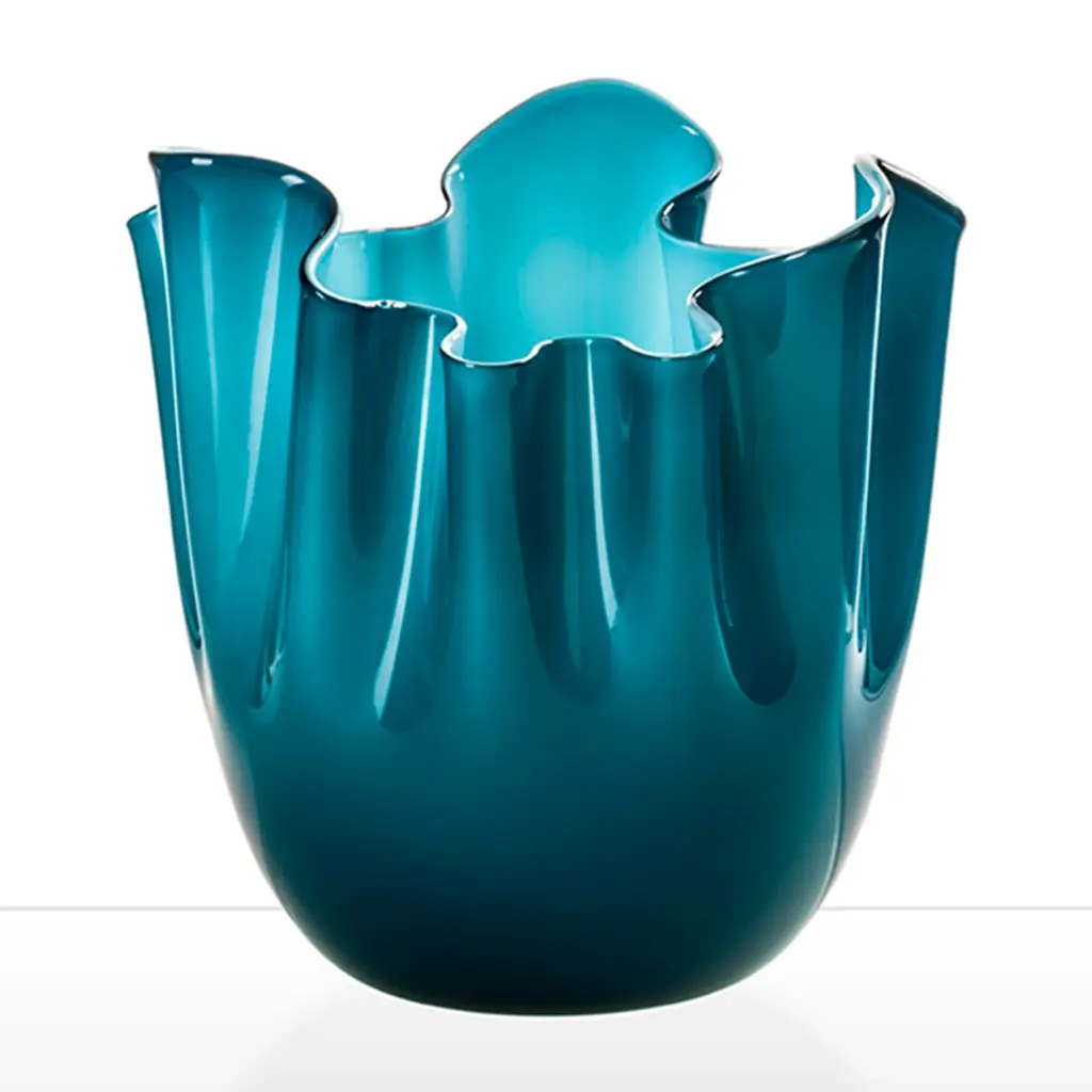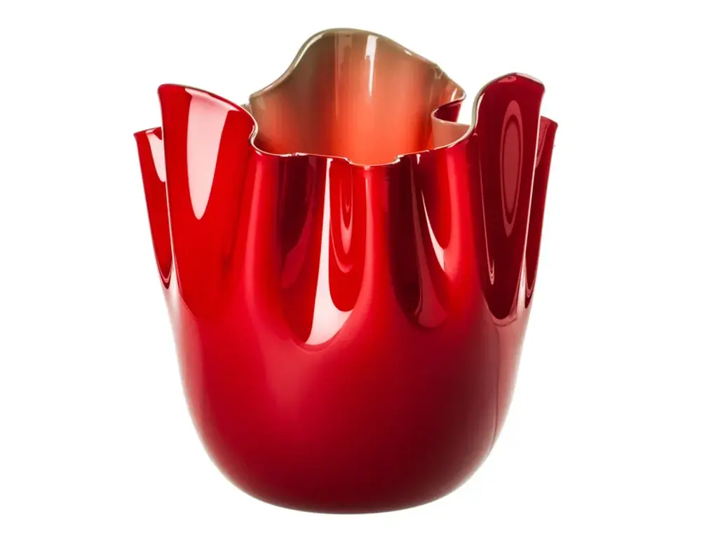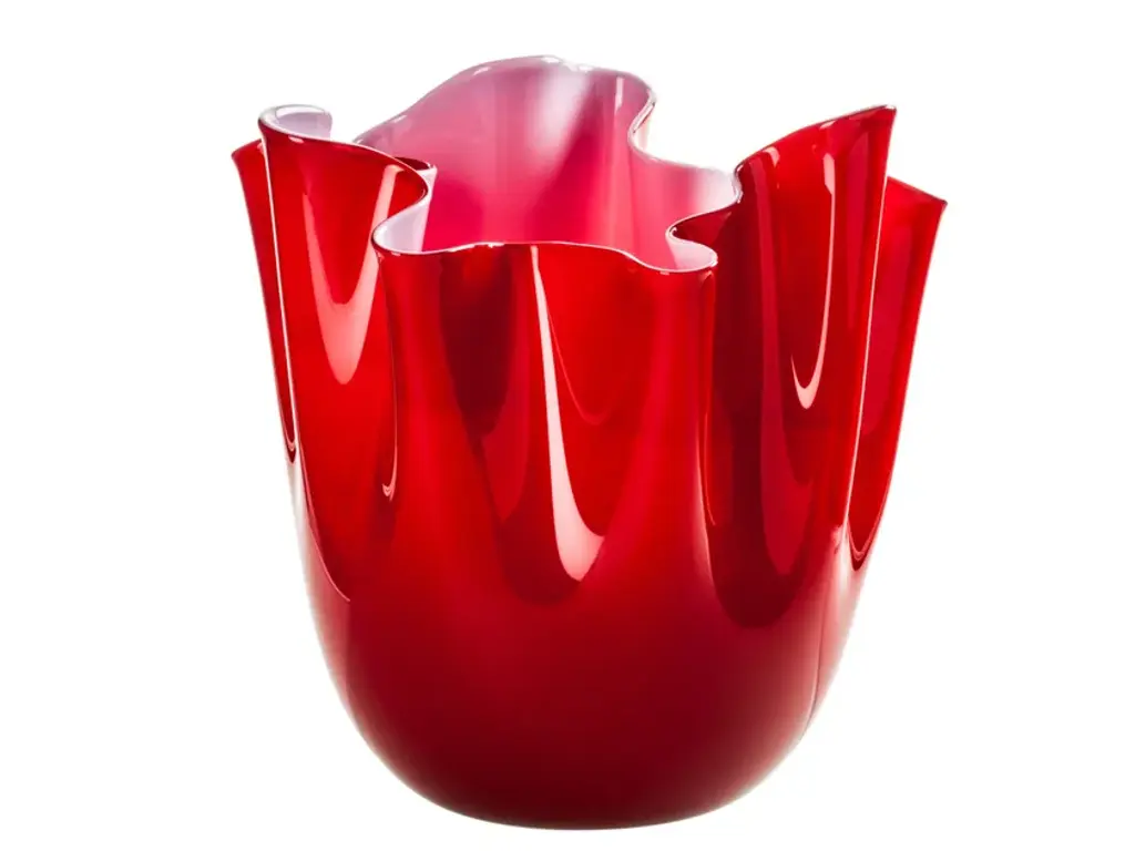 Fazzoletto Opalino Bicolore is a vase made of opal glass, available in different colors and sizes.An exclusive new take on the Opalini technique from the 15th century makes its colour unique. The creative genius of Fulvio Bianconi makes its shape inimitable, recalling skirts swaying in the breeze. Every Fazzoletto Opalini is truly unique: there's not another one like it anywhere.Colors:RED/OPAQUE PINKRED/APPLE GREENHORIZON/AQUAMARINEDoes it move with the wind? Will it move when I blow on it? Shall I try? Fazzoletto (‘Handkerchief’) is one of the first works designed by Fulvio Bianconi for Venini and is created by a master glassmith with a soft, but firm, sweeping gesture. A gesture that is art, magic, poetry and pride, as it has become part of the permanent exhibits at the MoMA in New York.