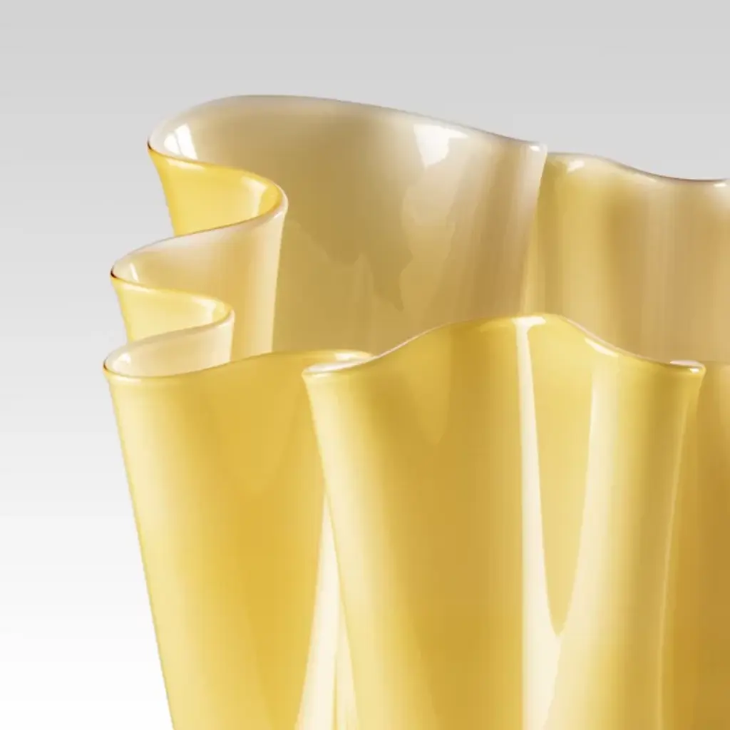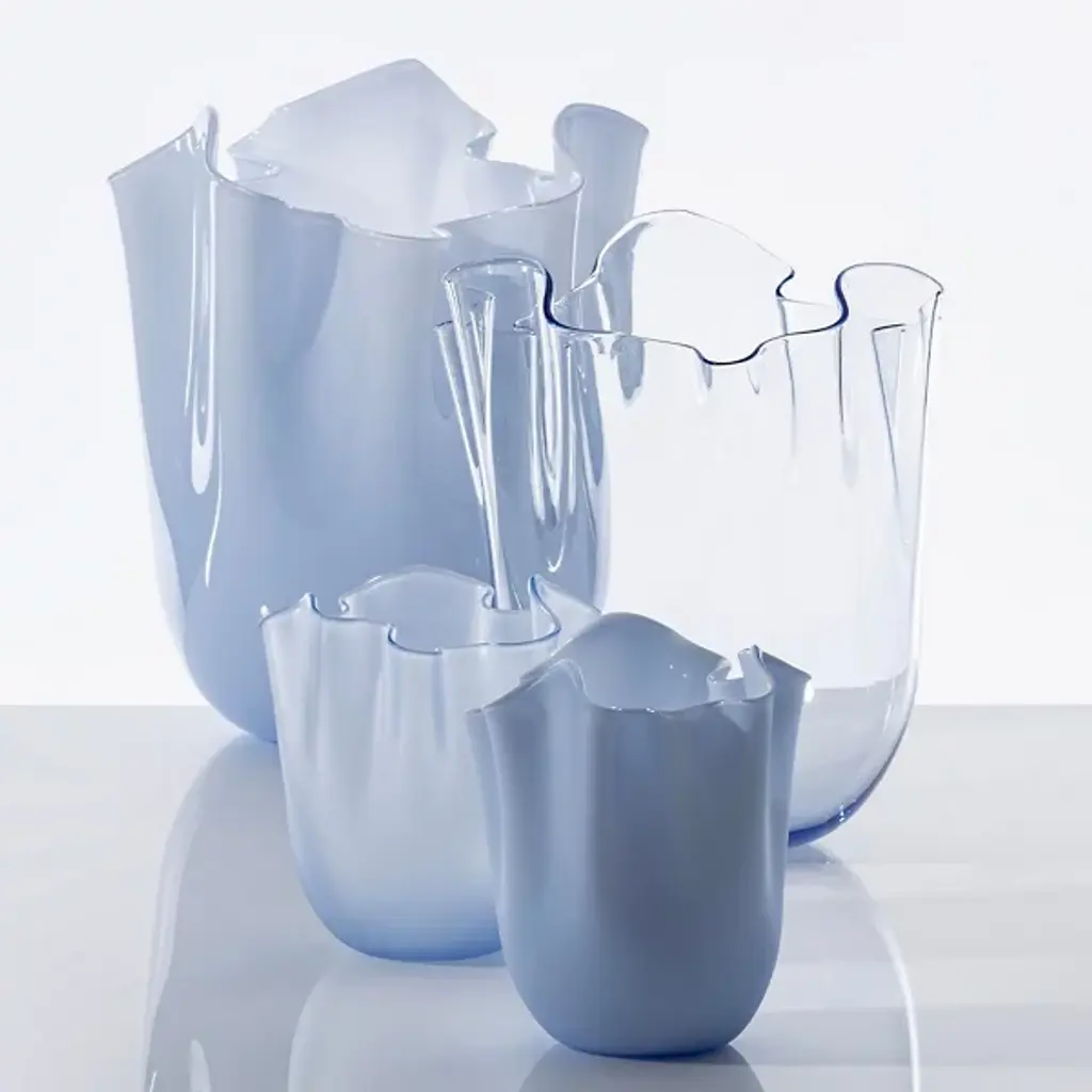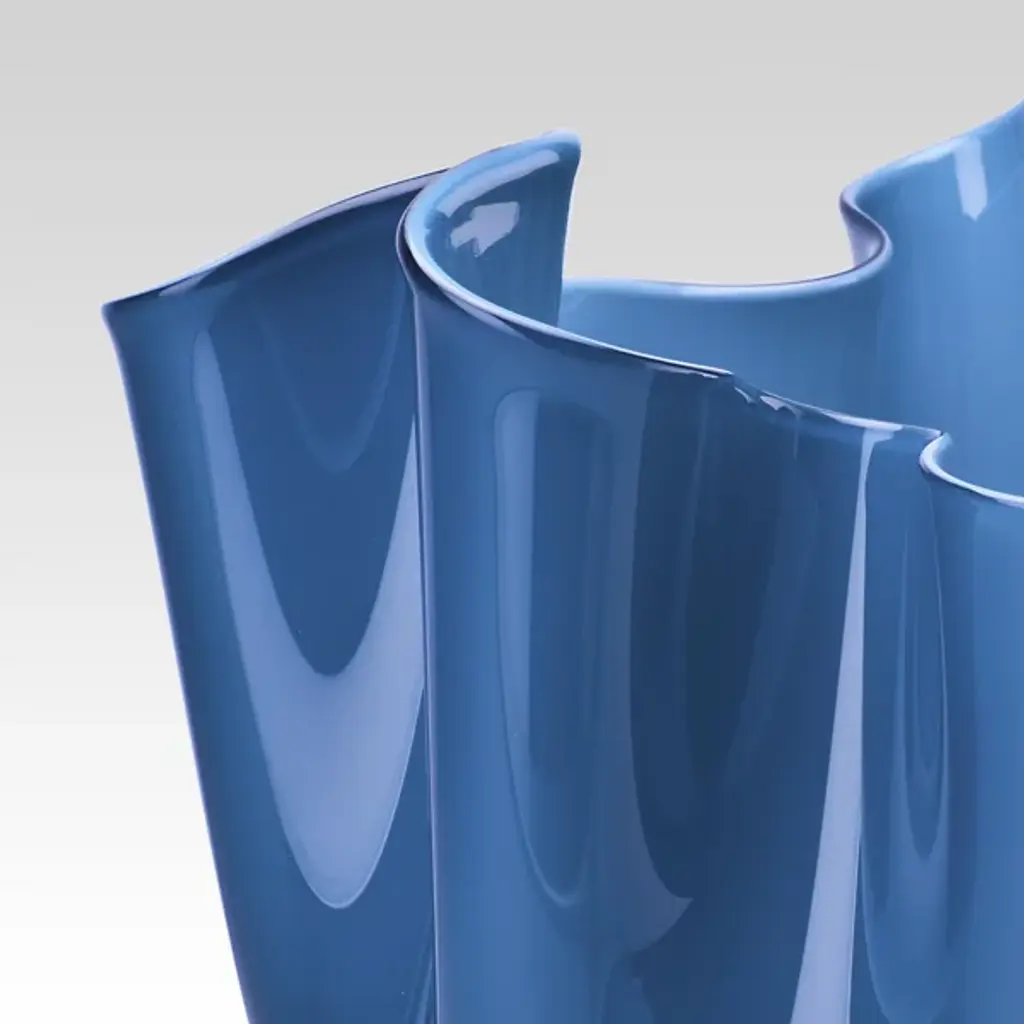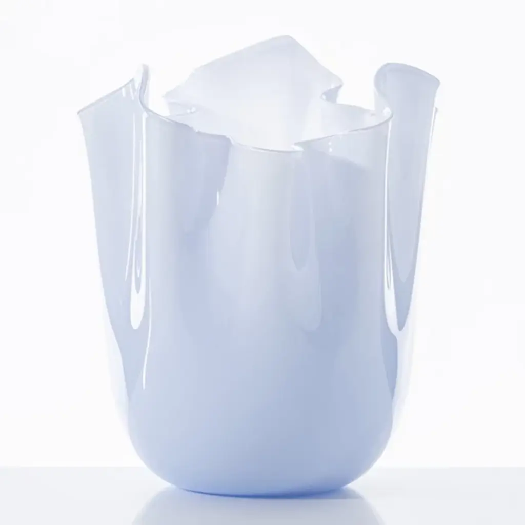 The Fazzoletto Vase from Venini appears to move with an impossible lightness, created by Fulvio Bianconi in 1948. Made in Murano, each vase requires an expert glasssmith’s perfectly timed gesture to achieve its signature handkerchief-like movement. This artistic milestone has earned its place in New York's MoMA permanent collection, representing the pinnacle of Italian glassmaking artistry. This timeless home décor piece embodies the perfect balance between technical precision and creative expression.