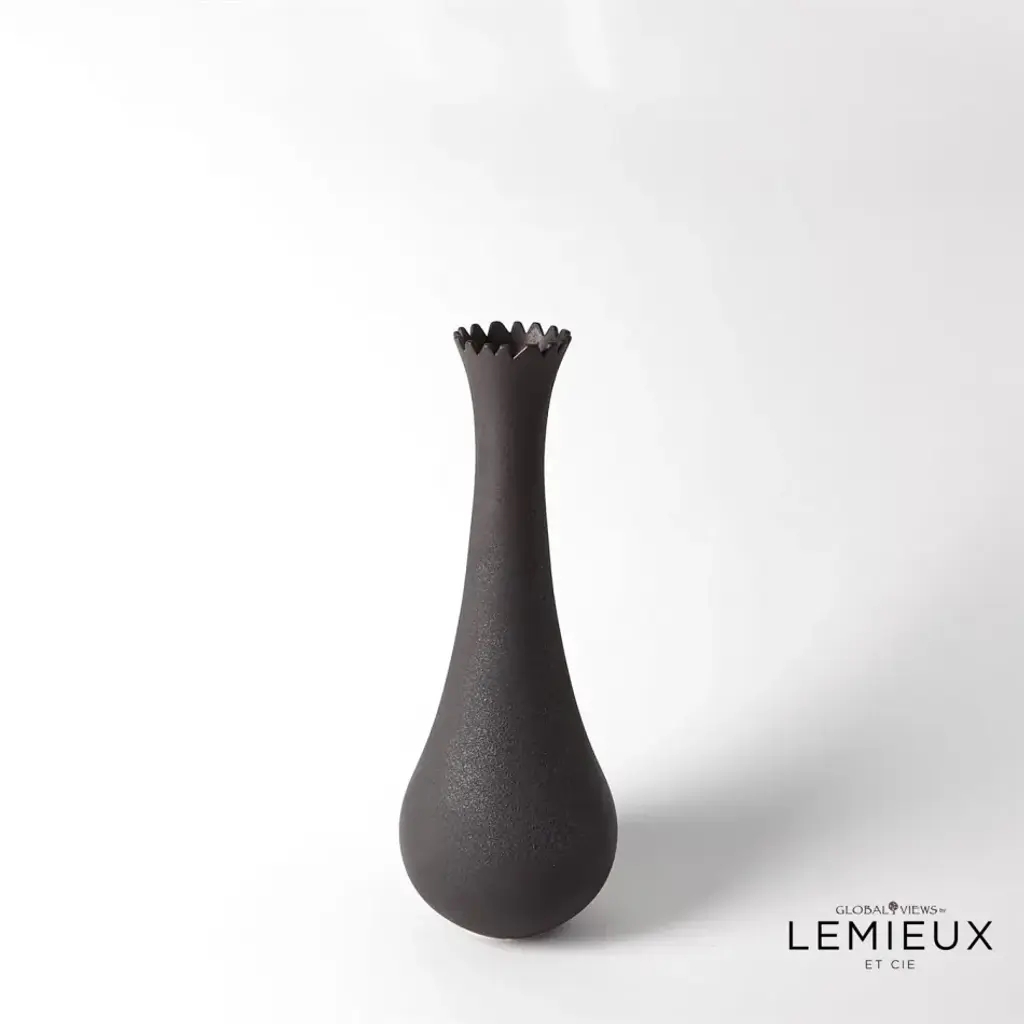 The Overscale Vases in Black combine scale and organic form for decorative drama. Whether alone or in a grouping, these vases are the perfect graphic elements to compliment any decor. Listed from left to right as shown in the image: Deoune Vase, Pasteur Vase, Fenouil Vase, Panisse Vase, and Muguet Vase. From a fashion forward perspective, Global Views offers accessories, furniture, statement lighting, and an assortment of rugs and mirrors to add beauty and joy to your home.