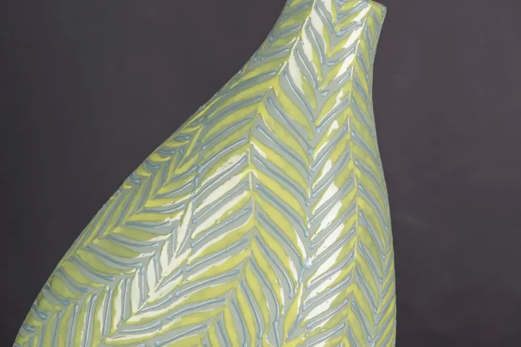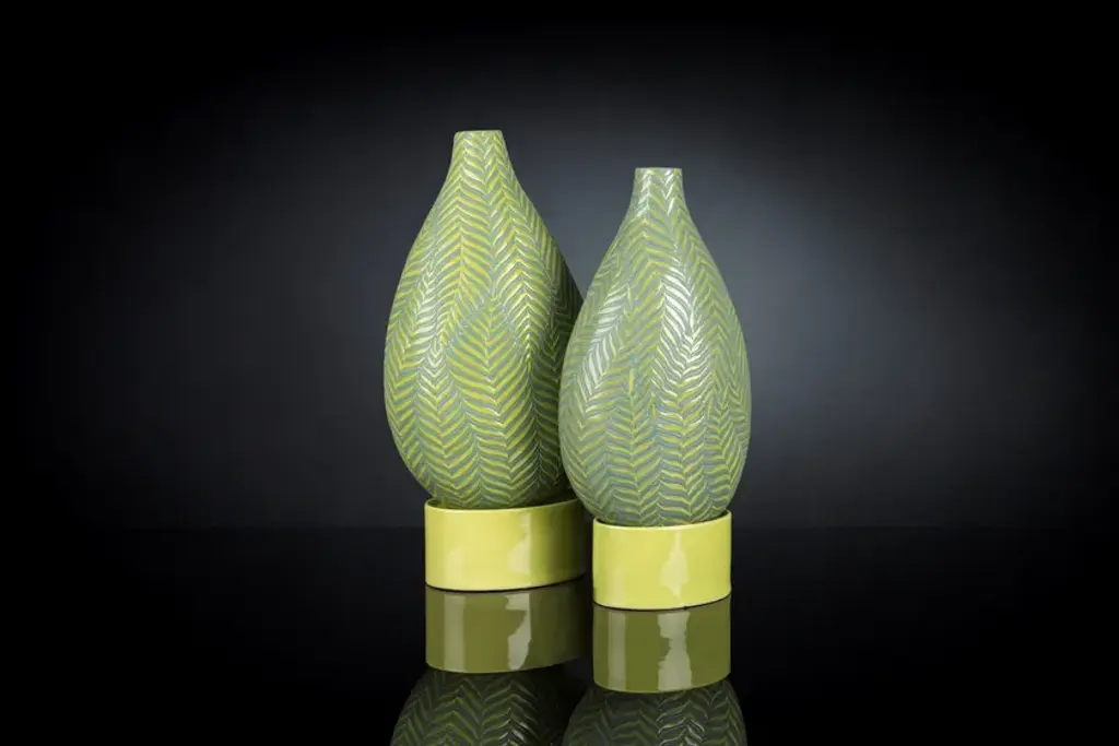 Fern is a decorative vase in gres porcelain with covered in velvet.