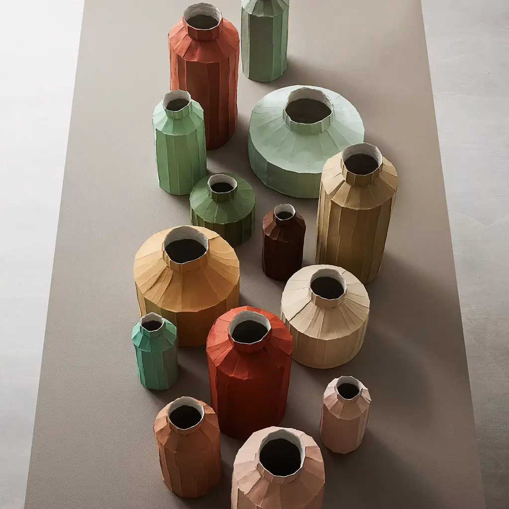 The splendid result of innovative craftsmanship, this vase is part of a series of pieces of functional decor superbly handcrafted of paper clay, a material that combines fibers into the clay mix to create roughs and unique shapes and textures. Boasting a sublime sage green color and a sturdy silhouette, this piece will stand out in both traditional and modern decors. Every one of Paola Paronetto’s creations is unique. Slight variations in shape, colour and size are to be considered a guarantee of authenticity and value. They are finished with non-toxic satin-finish enamels. Although very rarely, it is possible for them to leak after long periods of exposure to water. It is therefore advisable to test their water resistance before using them on delicate surfaces. They should not be used as dining utensils. The white pieces can be washed with water or sanitizing products, whereas the coloured pieces must be treated more gently and cleaned with a feather duster or a soft cloth, dry or moistened very slightly with water.
